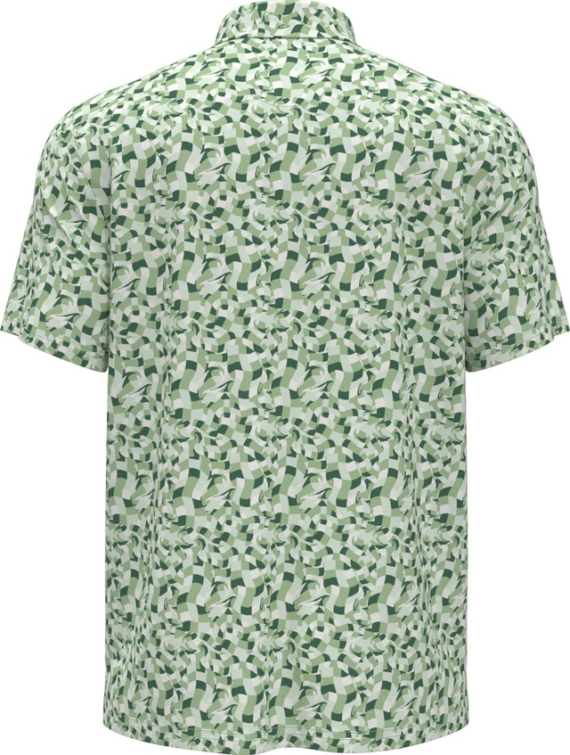 The Original Penguin Men's Underwater Mosaic Polo T Shirt features a vibrant all-over underwater mosaic print that adds a touch of artistic flair to your casual wardrobe. The moisture-wicking technology draws perspiration away from your body to keep you dry and comfortable. This sustainable polo is crafted from recycled polyester fabric using an eco-friendly production process, making this polo t shirt a sustainable option for both athletic and casual wear.