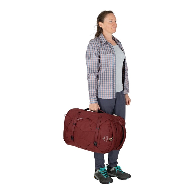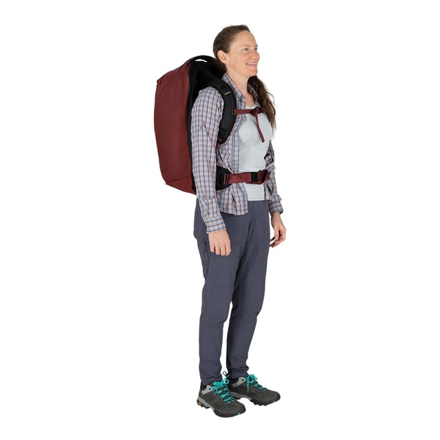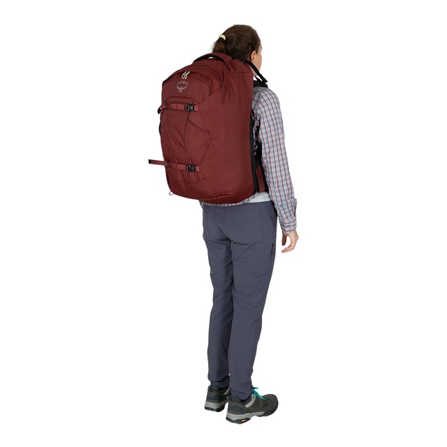 The Osprey Fairview 40 Travel Pack is designed for exploration. It features multiple pockets and compression straps for easy storage, along with a LightWire frame, breathable harness, and adjustable torso fit. A long sleeve can carry and protect a 16-inch laptop or tablet. This 40L travel pack uses high-wear fabrics, making it lightweight, flexible, and durable for outdoor exploration.
