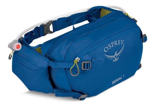 The Osprey Talon Biking Hydration Waistpack 7L offers a convenient off-the-back hydration solution for cyclists. Constructed with bluesign approved and GRS-certified recycled fabrics, this eco-friendly pack also boasts a PFAS-free DWR treatment and BPA-free reservoir.