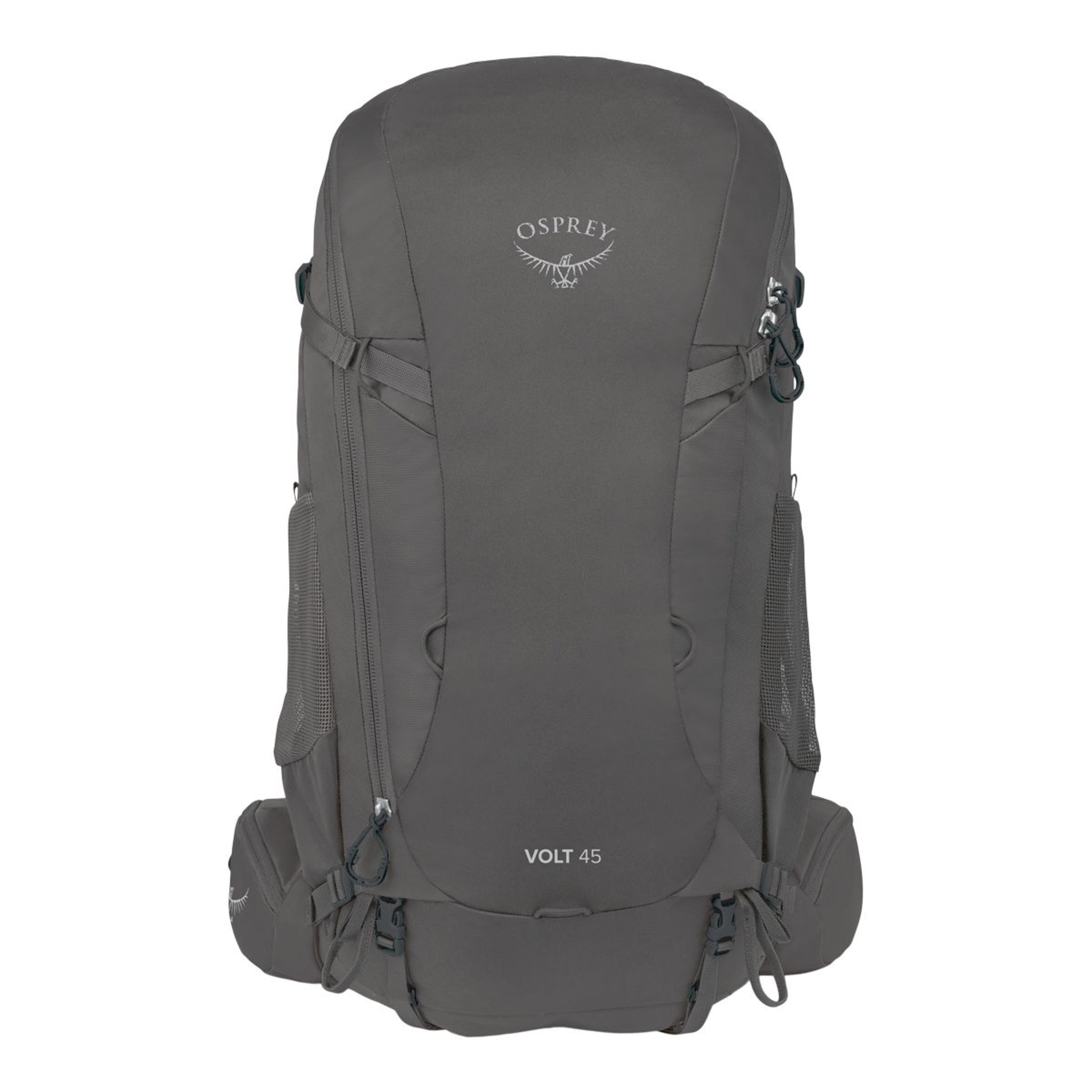 The Osprey Volt 45L Backpack features an internal hydration sleeve, dual compression straps and ice axe loops. It includes a raincover, dual zippered hipbelt pockets and side mesh bottle pockets. Its J-zip opening allows easy access, and this Osprey backpack is enhanced with bluesign® approved materials for sustainability.