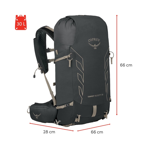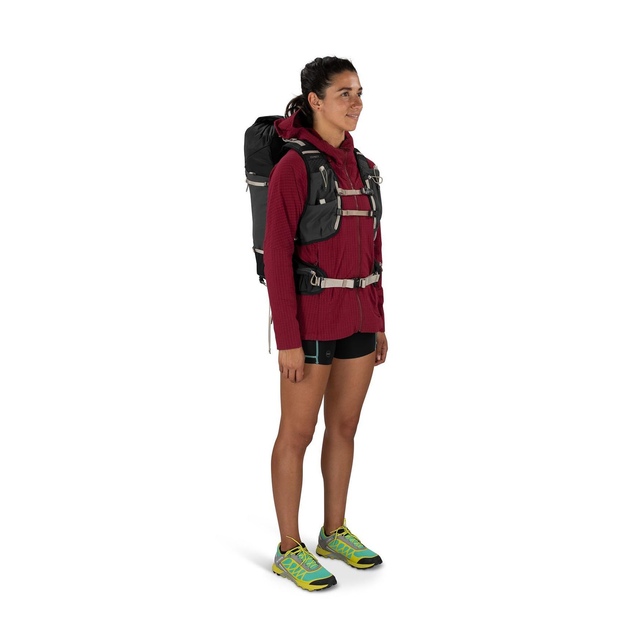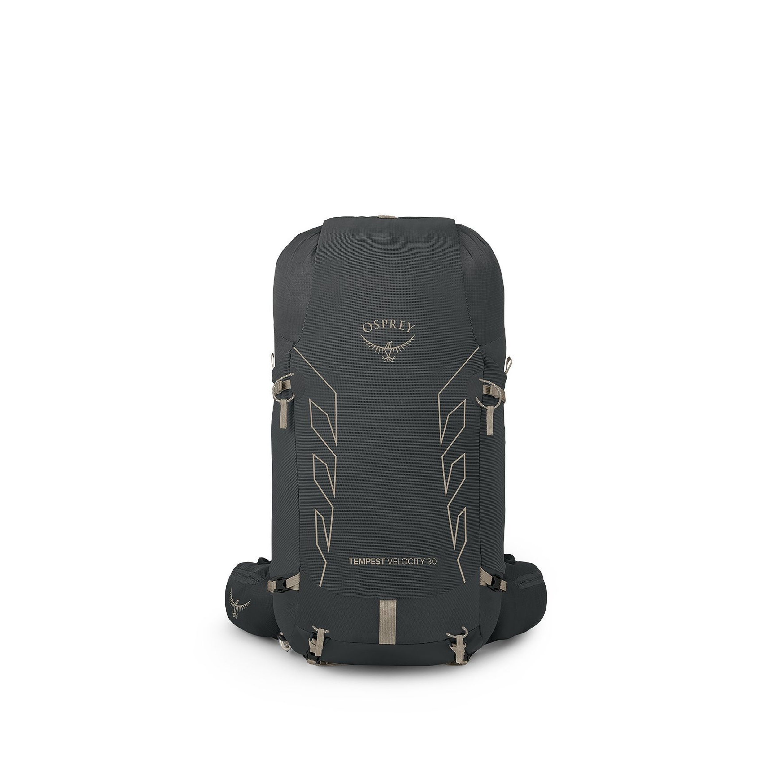 The Osprey Women's Tempest Velocity 30L Backpack is a multi-sport pack for trail running, peak bagging, or skiing. The flexible back panel and running-vest-inspired harness provide a movement-friendly fit. The pack includes dual stretch side pockets, a zippered phone pocket, and an external hydration sleeve for convenient access to essentials. Compression straps, gear attachment points, and a helmet-compatible front pocket secure equipment. This women's backpack is a bluesign® certified for environmental responsibility.