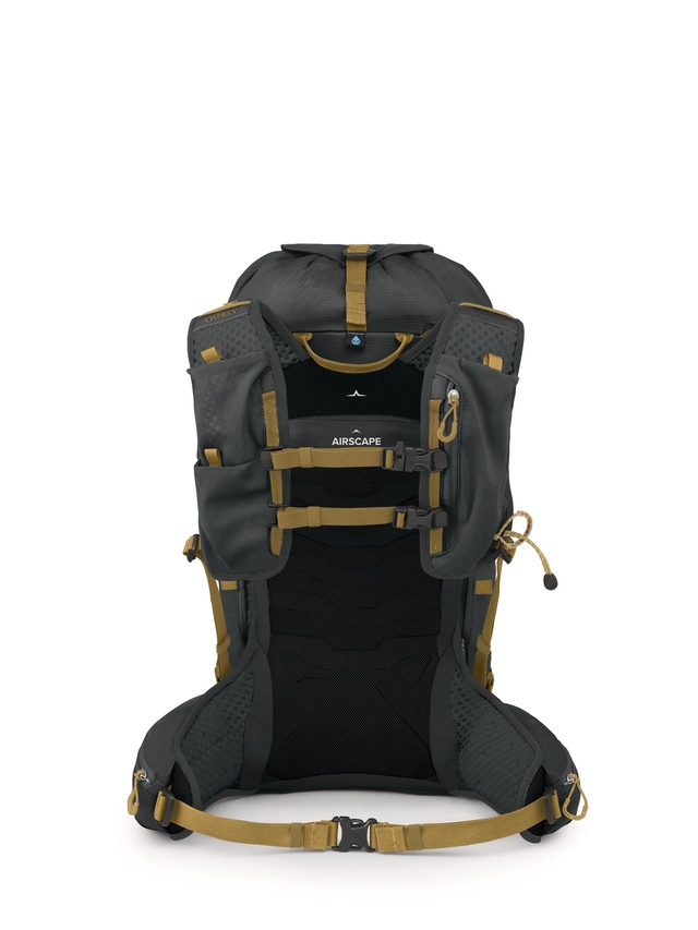 Osprey 500ml soft-flask compatible pockets with stabilization loops keep hydration accessible