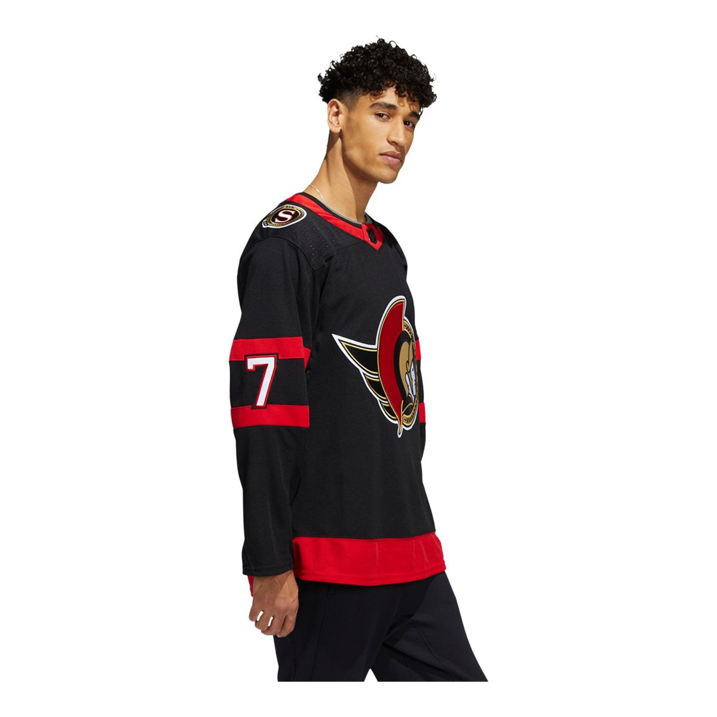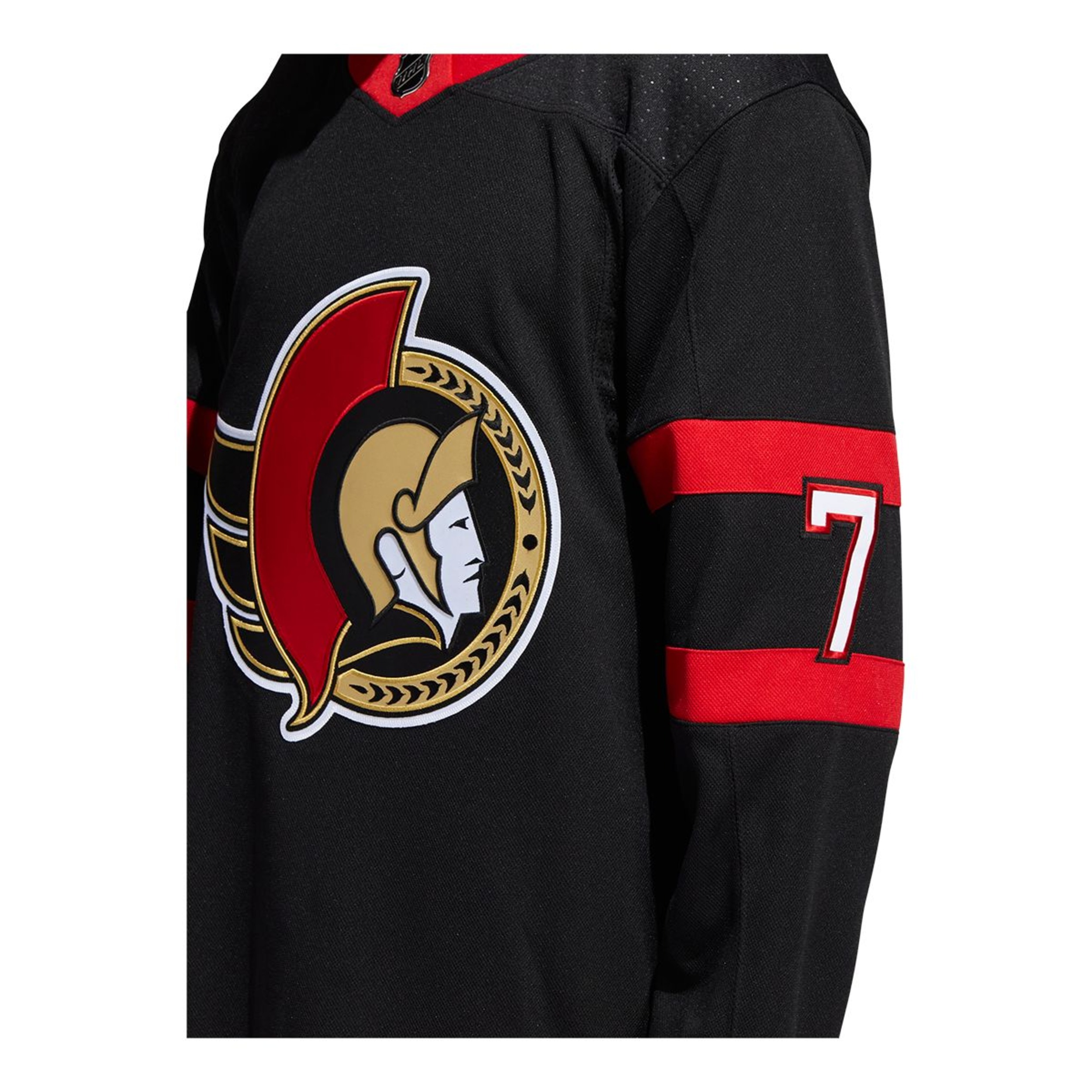 Brady Tkachuk fans can stand by the Senators as the puck drops in this adidas hockey home authentic jersey. Mesh ventilation and moisture-absorbing AEROREADY ensure you stay dry and comfortable as you root for Ottawa. A fight strap with a hook-and-loop closure stays true to the classic look. This product is made with Primegreen, a series of high-performance recycled materials.