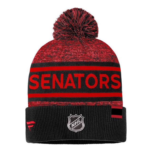 Flaunt your Ottawa Senators pride with this Fanatics Authentic Pro Heathered Cuffed Pom Knit. This officially licensed NHL beanie features a cozy heathered blend and a charming pom-pom on top, perfect for keeping your head warm while showing off your team spirit. The cuffed design adds a touch of style, while the Fanatics Branded branding ensures authentic quality. Whether you're cheering on the Sens at the game or staying toasty on a chilly day, this pom-pom beanie is a must-have for any devoted fan. Represent your team in comfort and fashion with this Authentic Pro Collection piece.