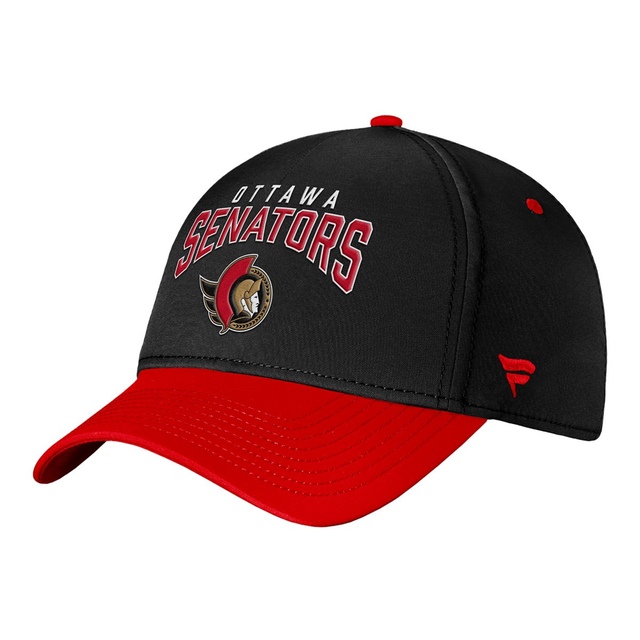 This Ottawa Senators cap is perfect for any hockey fan. The embroidered Senators logo and team name on the front show your team spirit in classic style. The NHL conference patch stitched on the back adds authentic detail. Made from polyester and elastane, this structured flex fit cap provides a comfortable, secure fit. The Senators' primary color covers the hat while the secondary color accents the visor. With its sharp team graphics and structured silhouette, this cap will become a go-to in your game day wardrobe. Show your Senators pride in this versatile cap fit for the rink or the streets.