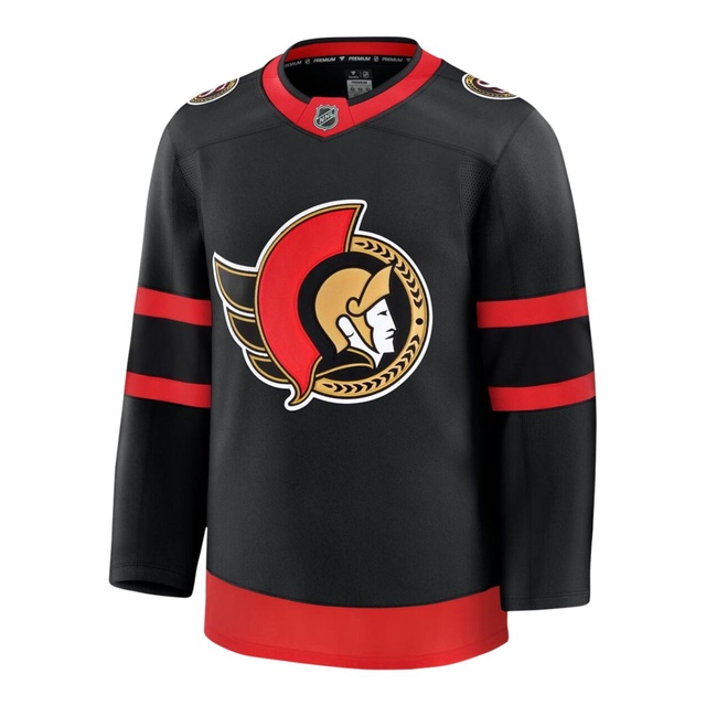 The Ottawa Senators Fanatics Premium Home Jersey offers passionate fans a replica of the on-ice NHL experience. This premium jersey features sewn down tackle twill with high-definition embroidered team crest, and shoulder patches for authentic detailing. An embroidered Fanatics flag and holographic NHL shield ensure it's an officially licensed jersey to represent what the players wear on the ice.