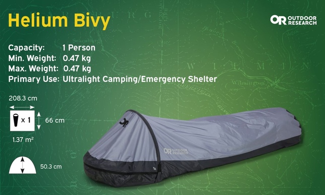 The Outdoor Research Helium Bivy Tent is an ultralight and durable shelter designed for minimalists focused on efficiency. Lighter than earlier models, it provides a compact solution for thru-hikers and bikepackers. With its streamlined design, this tent is easy to set up and take down, offering quick, reliable protection for adventurers who need to travel light and stay prepared in unpredictable conditions.