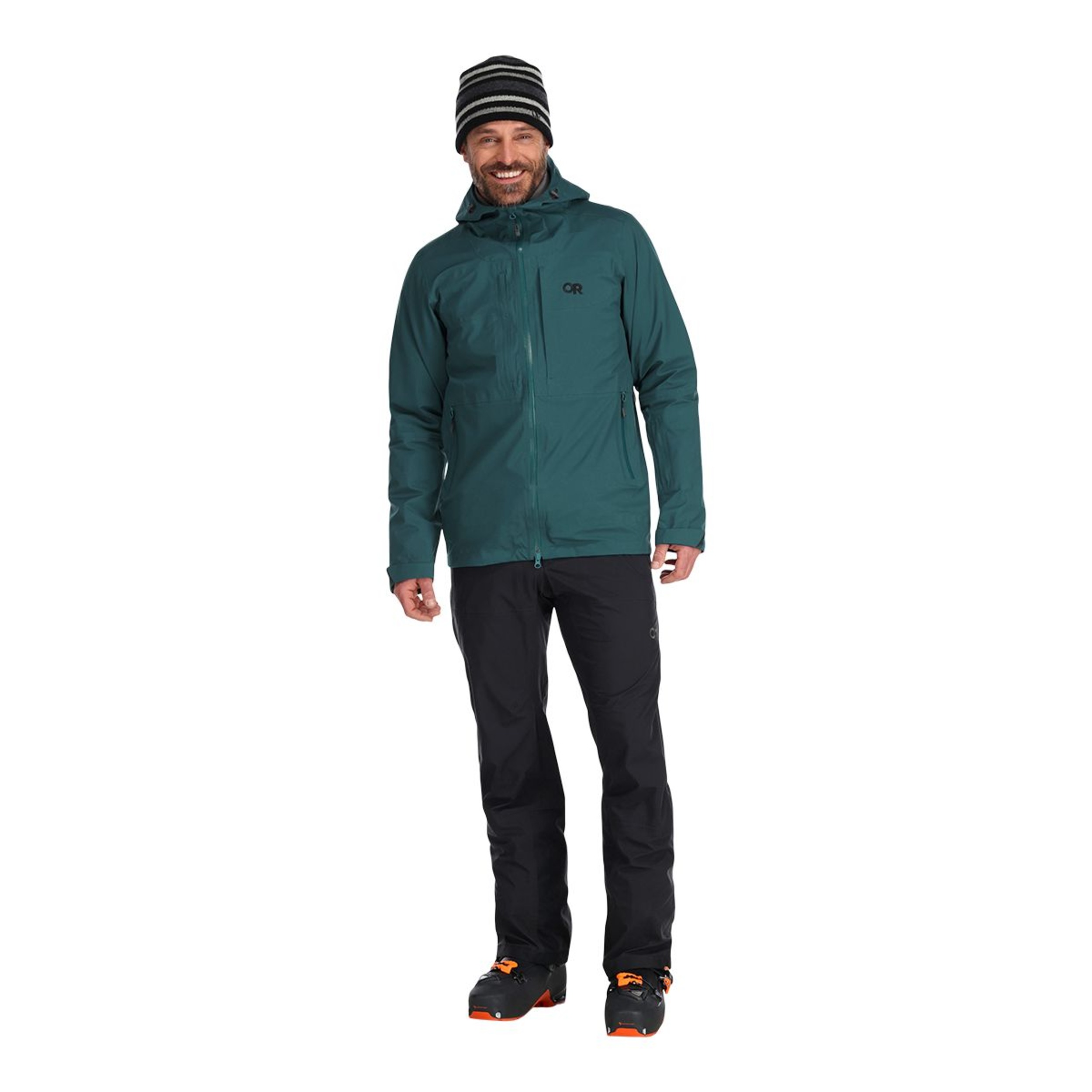 The Outdoor Research Men's Carbide 3L Shell Jacket, a SKI Magazine Gear of the Year Award winner, offers versatile performance for backcountry tours and inbounds skiing. This jacket features 3-layer waterproof, windproof, and breathable protection with stretch for easy movement. The fully seam-taped design keeps moisture out, while the adjustable, helmet-compatible Halo hood with wire brim provides coverage. Perfect for skiing and snowboarding, this shell jacket ensures comfort and protection.