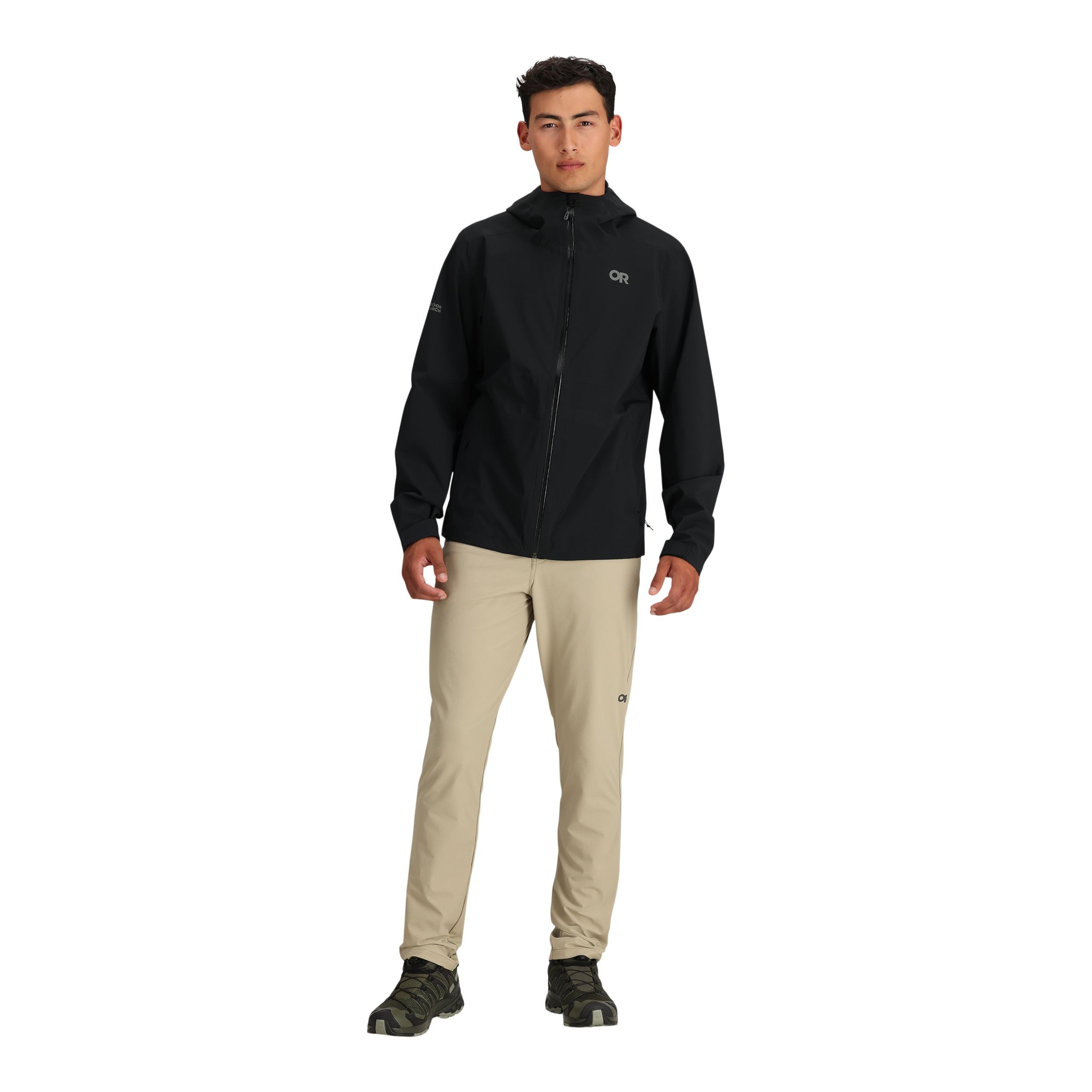 Keep the elements at bay in the Outdoor Research Men's Stratoburst Stretch Rain Jacket. This lightweight, waterproof and windproof jacket features breathable Ventia™ technology and fully seam-taped construction to help you stay dry in the rain and snow. Stretch panels allow for a full range of motion as you bend and move and the durable bluesign® approved materials are built to last. Wherever you roam, this Outdoor Research rain jacket has you covered on all your outdoor adventures.