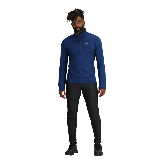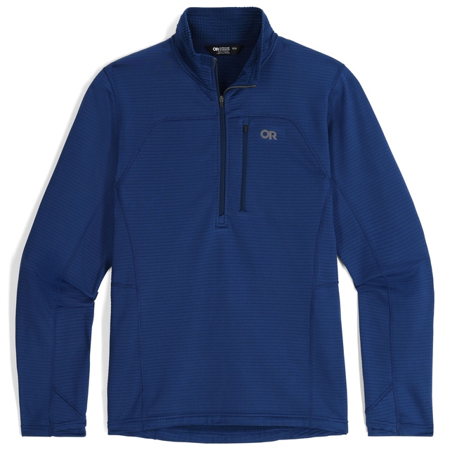 The Outdoor Research Men's Vigor Grid Half Zip Top is a lightweight performance layer ideal for demanding activities. Its breathable waffle grid backing and ActiveTemp™ technology manage body temperature and wick moisture away. The top dries quickly, and features stretch fabric for unrestricted mobility. With flat-seam construction to prevent chafing, UPF 30 sun protection, and an ergonomic fit with thumb holes, this fleece top is perfect for outdoor adventures.