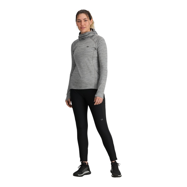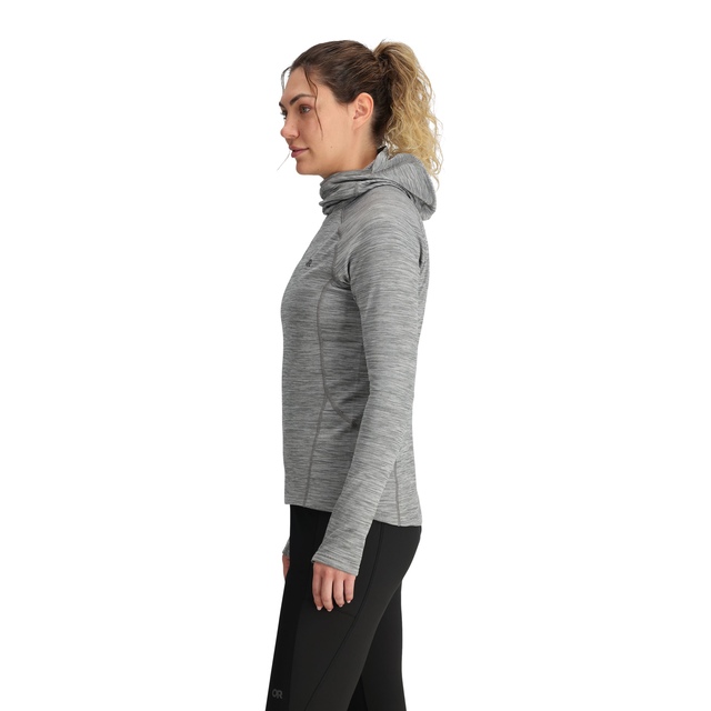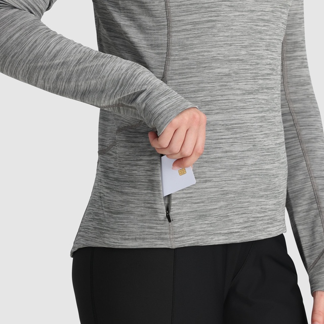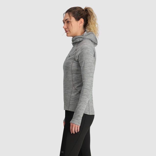 The Outdoor Research Women's Vigor Grid Pullover Hoodie is designed for active outdoor wear. The ActiveTemp™ fabric treatment offers effective temperature management for cool and dry comfort. The flat-seam and dynamic reach design provide a chafe-free fit, and UPF 30 sun protection protects you on sunny days. The zippered chest and hand pockets make this fleece hoodie practical for storing essentials during outdoor activities like hiking or nature walks.