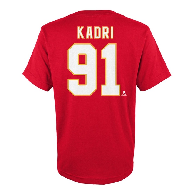 The Outerstuff Youth Calgary Flames Nazem Kadri Player T Shirt allows young fans to showcase support for Nazem Kadri. Made from soft cotton fabric, this licensed NHL t shirt features bold graphics with Kadri's name and number for a comfortable representation of their favourite player.