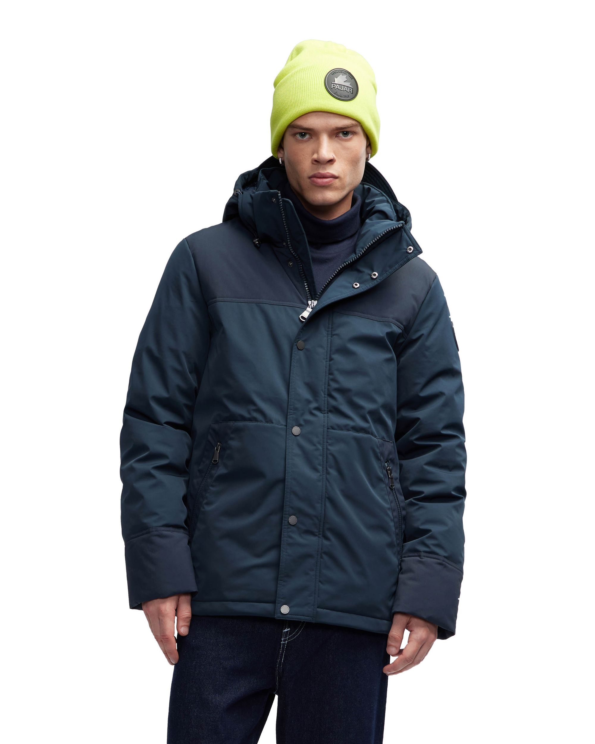 The Pajar Men's Wiyot Lightweight Puffer Jacket is a lightweight insulated jacket with a core fit designed for comfort and mobility. Made with a mixed-media construction, this puffer jacket features jersey knit storm cuffs to protect against the elements and adjustable bungee ties at the hood and hem for a customizable fit.