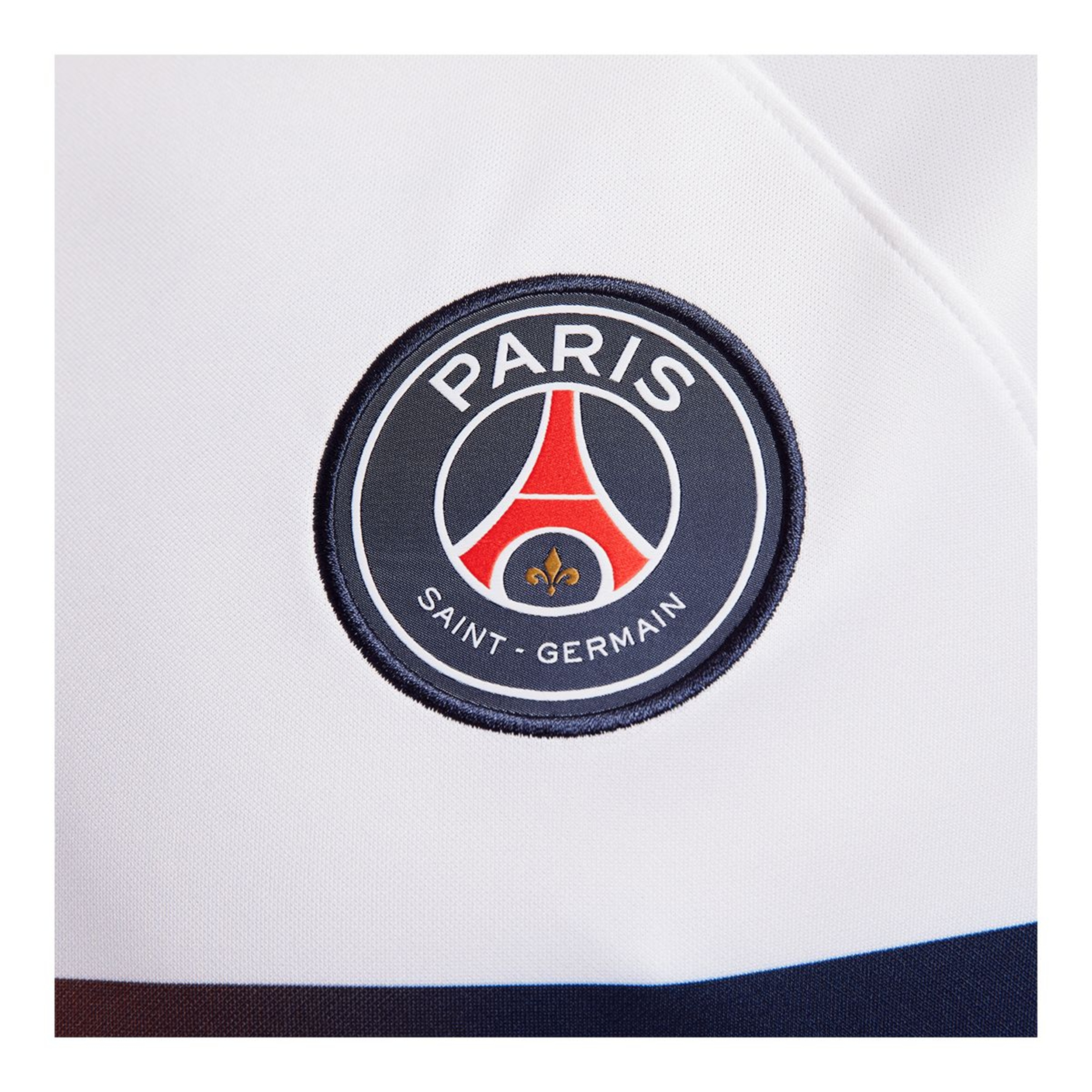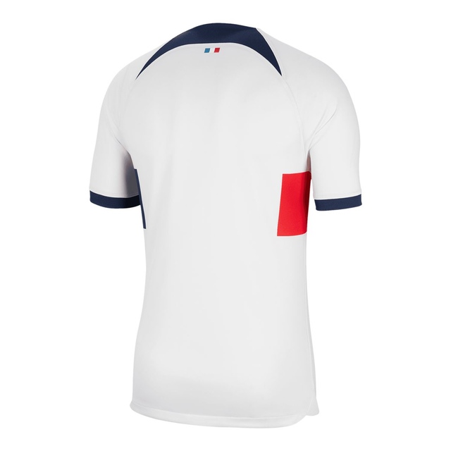 The inspiration for the PSG 2023/24 Away kit comes from The La Ville Lumiere (City of Light). The white jersey features a graphic fading from red to blue, mimicking the way iconic lights of Paris fade into the night sky. The inner pride features the team name, while the outer pride features the French flag. Nike’s stadium collection pairs replica design details with sweat-wicking technology to give you a game-ready look inspired by your favorite team.