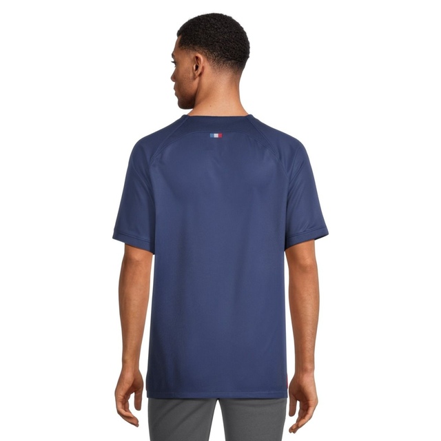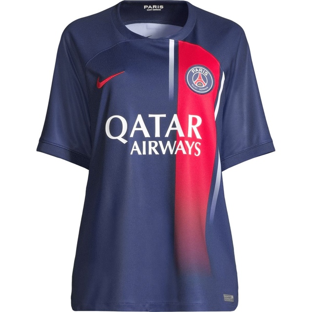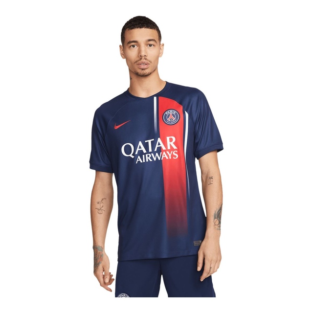 The inspiration for the PSG 2023/24 Home kit comes from La Ville Lumiere ("City of Light"). The mostly blue jersey has an off-center red graphic fading to blue, mimicking the way the iconic lights of Paris fade into the night sky. The inner pride has the team name, while the outer pride features the French flag. Nike’s stadium collection pairs replica design details with sweat-wicking technology to give you a game-ready look inspired by your favorite team.
