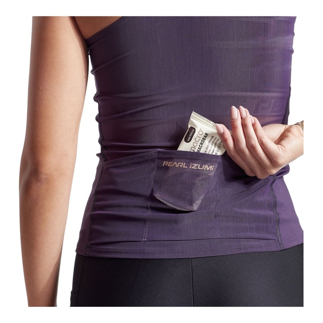The Sugar Air Tank blends on-bike features with the fit of your favorite support tank, so you’re always ready to go. Whether you’re commuting to a yoga class or getting in a lunch hour spin, the Sugar Air Tank effortlessly transitions from one activity to the next. Made from a high-stretch recycled polyester fabric, this sleek top has a rich feel and trim fit. An integrated shelf bra with removable pads offers mid-level support. The dual-mesh rear panel construction provides breathability and a touch of texture. Three rear bellowed pockets and Pearl Izumi’s signature BioViz® reflective elements let this piece stand in for a jersey any day of the week.