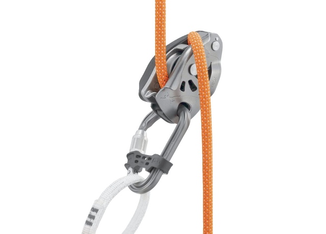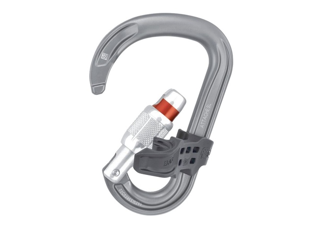 The unidirectional Petzl ATTACHE carabiner with removable BAR orients for major axis loading, maximizing ease when belaying or using ropes for glacier travel.