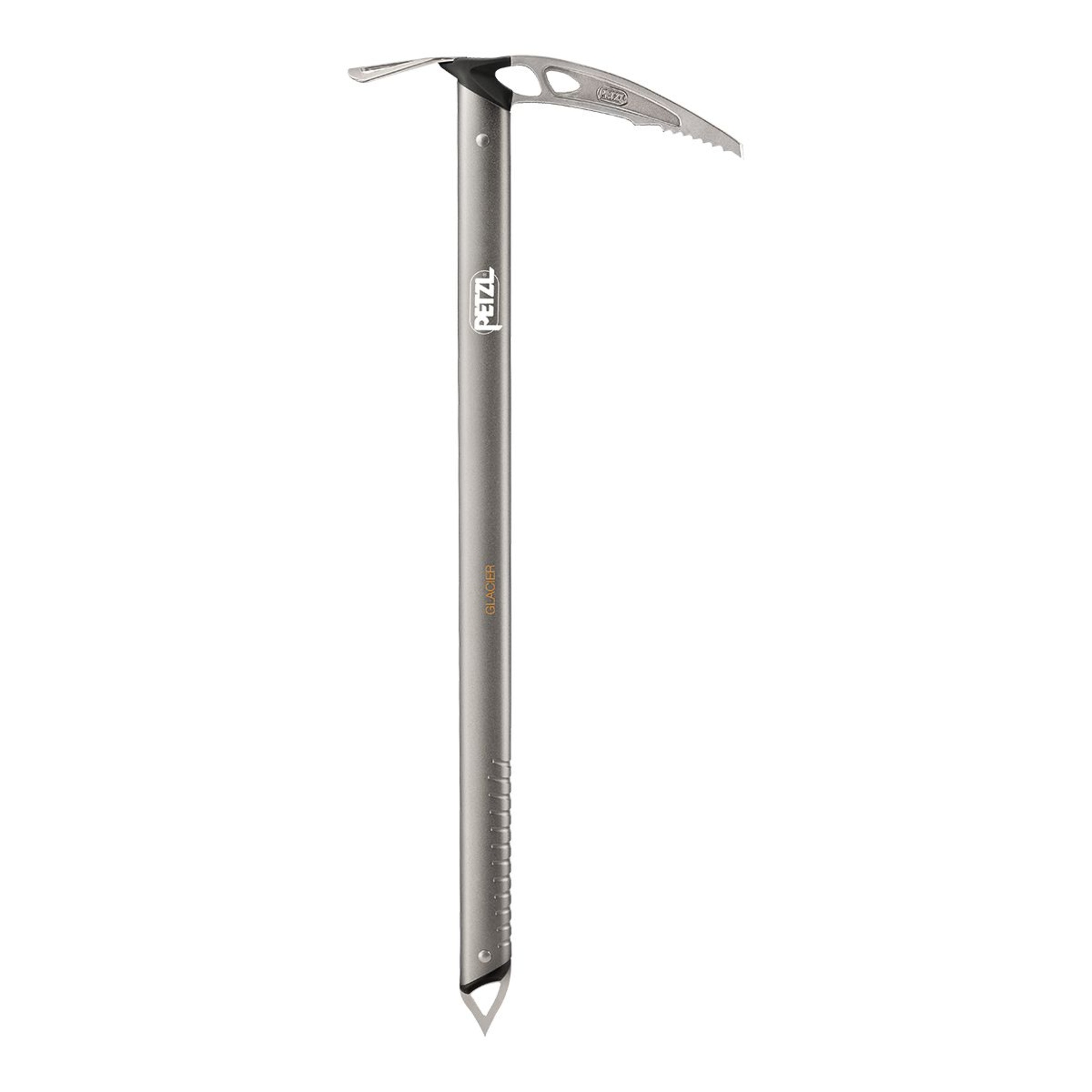The Petzl Glacier Axe provides unmatched reliability for serious mountaineering ascents. Its hot-forged T-section steel head has an ergonomic, slightly curved pick for secure purchase on hard ice and snow. The stainless steel spike at the base offers auxiliary support on tricky traverses. The shaft is crafted of ultra-strong aluminum for light weight without compromising strength. With its hardy materials and sturdy build, the Glacier Axe tackles vertical ice walls, steep couloirs, and mixed terrain.