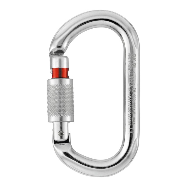 The Petzl OK Oval Screwgate Lightweight Carabiner is a versatile aluminum carabiner with a symmetrical oval shape, optimized for loading wide gear like pulleys and ascenders. Its fluid interior minimizes snagging and tearing, while the Keylock system prevents accidental catches. The well-built H-profile grip reduces weight and protects skin markings caused due to abrasion. The Screw Lock with a red visual warning ensures secure locking, making this hiking snap clip a must-have for outdoor activities.