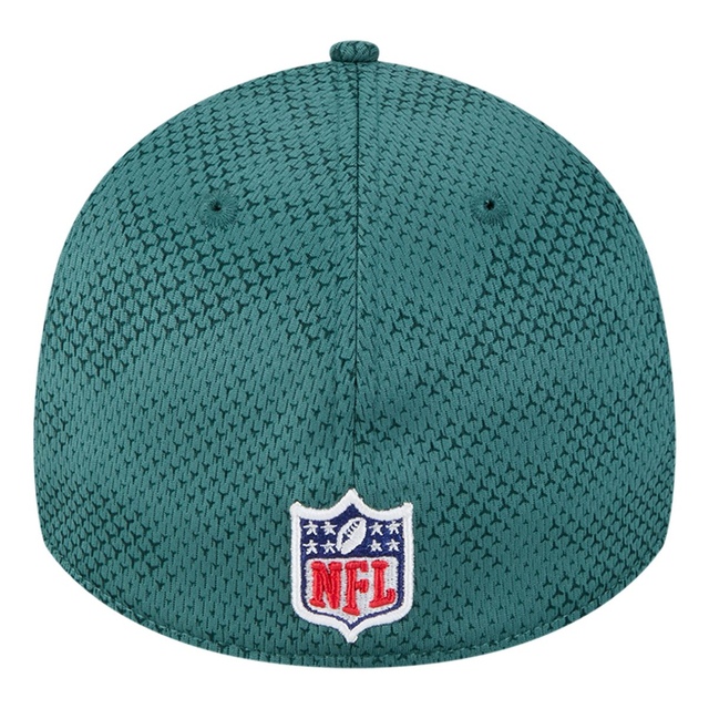 The Philadelphia Eagles New Era 24 Sideline 39THIRTY Stretch Fit Cap features a team color gradient print mesh fabrication for breathability. This authentic on-field cap has a conference side patch embroidered on the right side in team colors and the iconic NFL shield embroidered at the back.