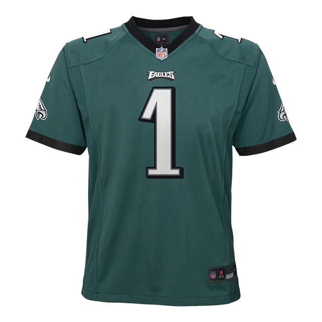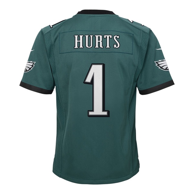 The Philadelphia Eagles Nike Youth Jalen Hurts Game Jersey combines team pride and comfort for young fans. Featuring an authentic Jalen Hurts name and number screen print, this jersey provides an athletic fit for ease of movement. The durable construction ensures long-lasting wear.