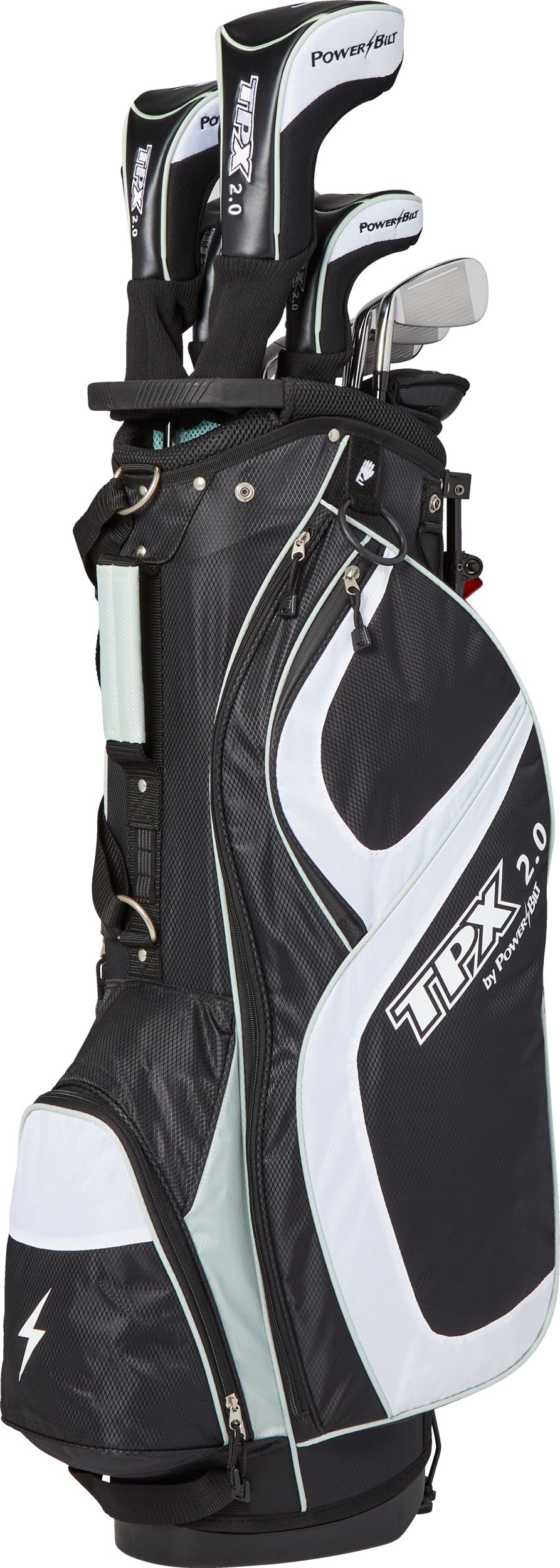 The PowerBilt TPX 2.0 Women's Golf Club Set is engineered to provide optimal distance and accuracy. This gold club set features an oversized driver that delivers effortless power off the tee, while the lightweight graphite shafts increase swing speed for longer drives. The offset clubs promote a higher launch and straighter ball flight.