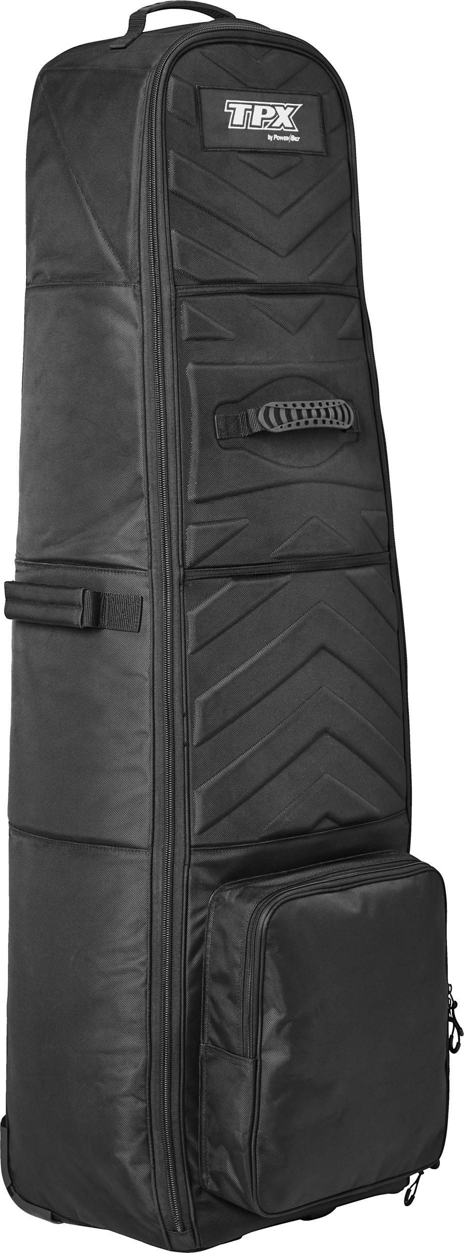 The PowerBilt TPX Wheeled Travel Cover is the ultimate golfing companion with its 360° compression molded padding, large hard-shell chassis, 2 inline wheel system, and 3 durable exterior handles. The U-shaped zipper opening design allows for effortless loading and unloading and the exterior compartment is perfect for storing your shoes.