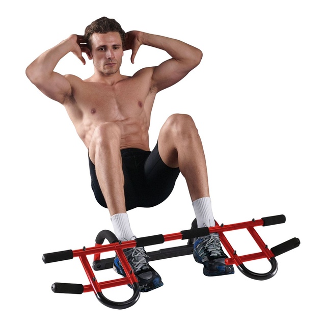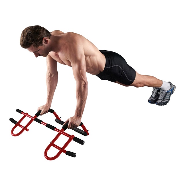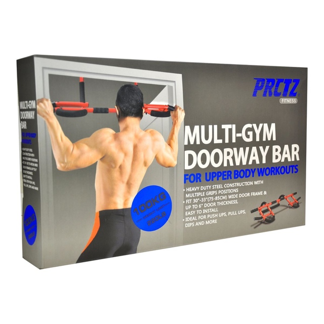 Turn your standard doorway into a personal gym with the PRCTZ Multi-Gym Doorway Bar by IBF Iron Body Fitness! This heavy-duty and versatile doorway gym allows for pullups, situps, pushups, tricep dips, and more! Fits most doorways and easily mounts in seconds without any screws. It will not cause damage to your walls or doors. Designed to withstand the most intense workout routines, this is the ultimate pull-up bar for building upper body strength.