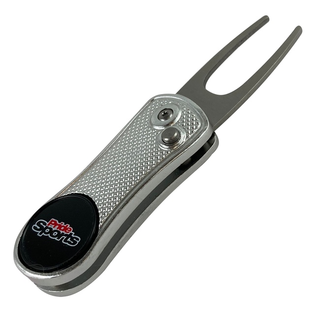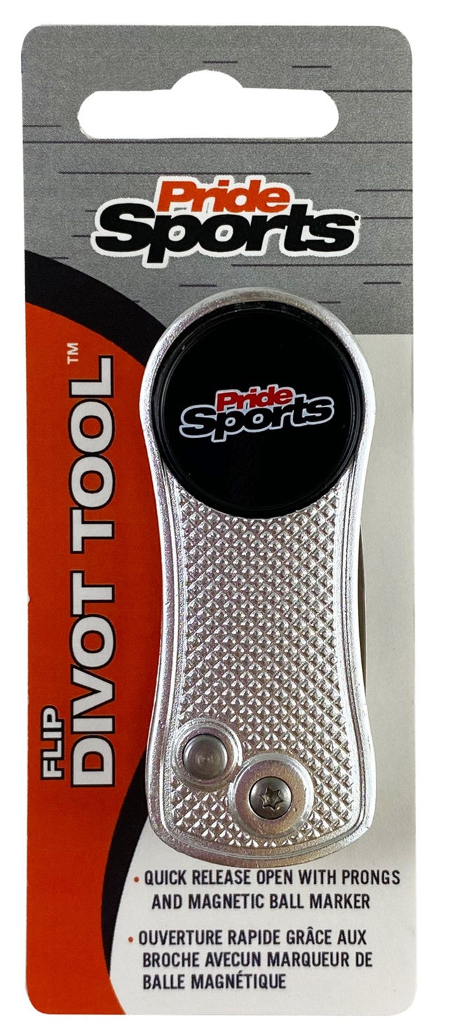 Fix those pesky turf divots using the Pride Sport Flip Divot Tool. It has an ergonomic switchblade action that quickly releases the prongs. Just as easy to retract, you won't have to worry about the points creating tears in your pockets.