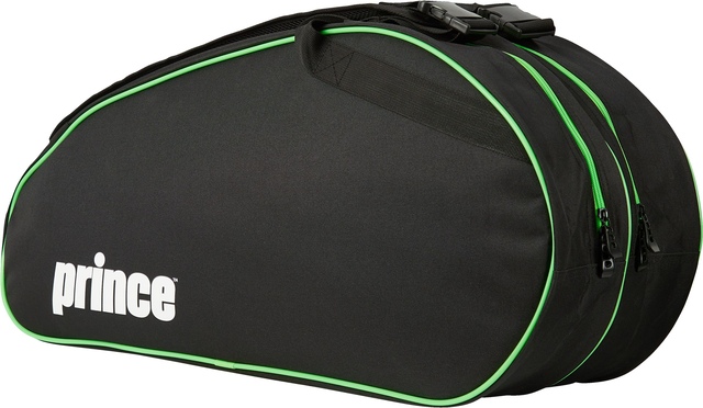 The Prince Badminton Bag keeps your equipment organized and protected. Its lightweight design and adjustable shoulder strap provide easy transport to the court. The main compartment fits 2-4 rackets, while smaller pockets store shuttles, grips, towels and accessories. Ventilated racket compartments prevent damage from moisture and let air circulate. An exterior pocket grants quick access to personal items. Durable polyester fabric withstands regular use. With room for all your gear and a strap for hands-free carrying, this bag simplifies your commute and keeps you focused on the match. The Prince Badminton Bag is a lightweight, durable solution for transporting your rackets and accessories.