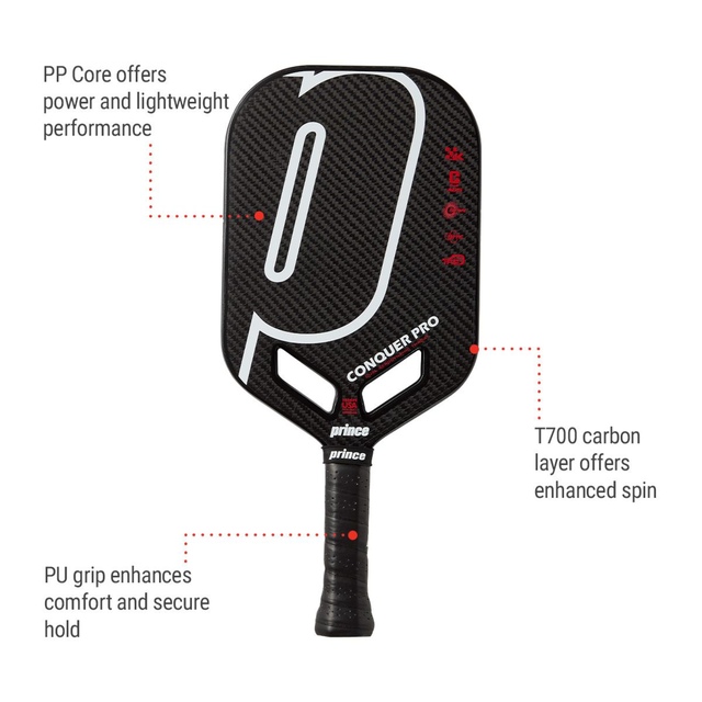 The Prince Conquer Pro Raw Carbon Senior Pickleball Paddle helps unlock your peak performance. This paddle combines a durable PP core with a high-performance 3K woven carbon layer. Whether competing or enjoying a casual game, it’s your ideal choice.