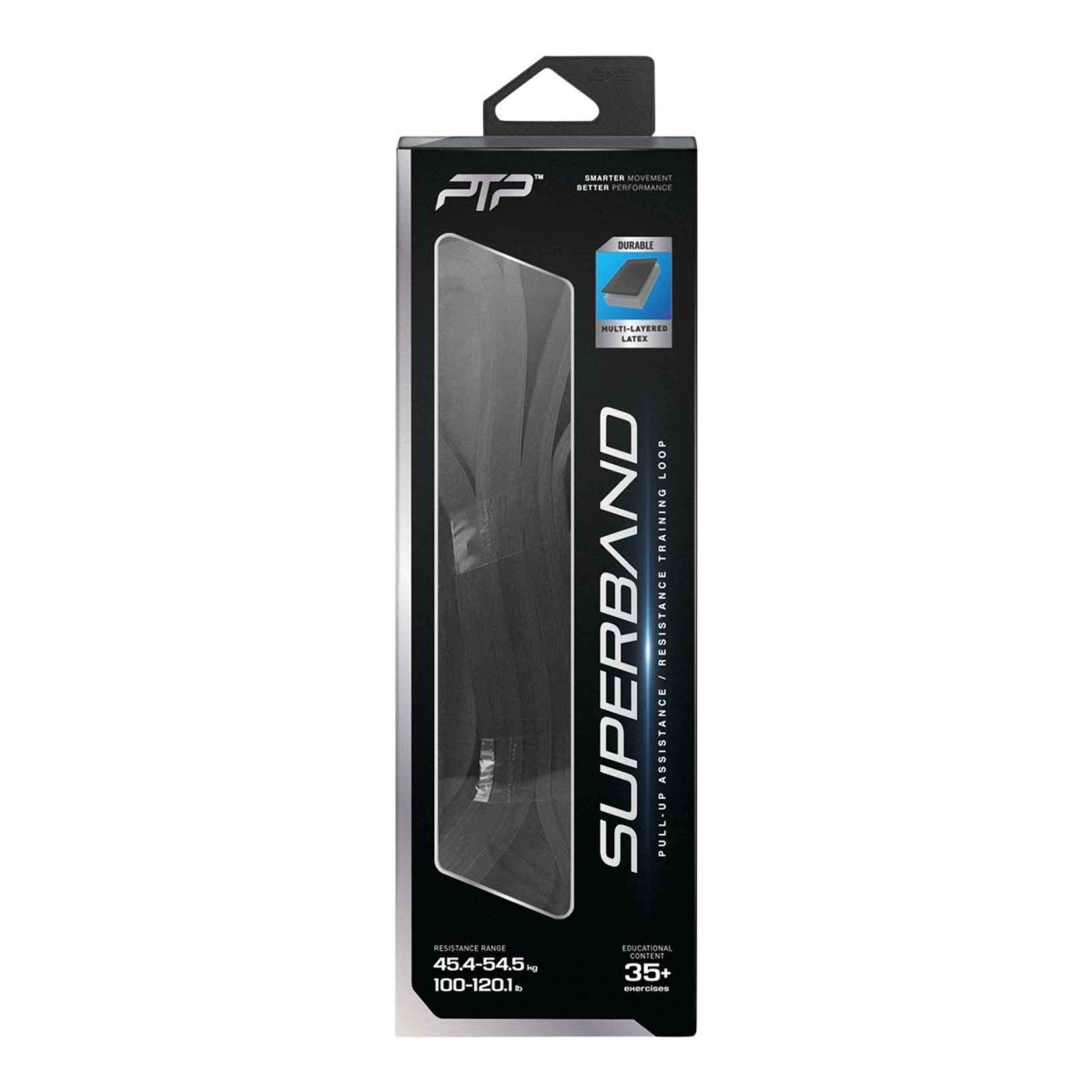 Do you want to strengthen your core, lats, shoulders, pectorals, biceps and triceps? Chin-ups, pull-ups and dips are effective compound exercises to work these muscles, but can be particularly daunting or challenging to beginners. Fortunately, the PTP SuperBands are here to help. How? Our SuperBands work by helping you lift your own body weight. The thicker the Superband, the greater the leverage and the easier the chin-up, pull-up or dip. Offering up to 54.5 kg worth of leverage, this black Superband is on the heavy side, which means it will suit those in need of a great level of assistance. If, however, it is used for explosive power training to improve strength and speed, this particular Superband will feel quite challenging and we therefore recommend it for athletic training and/or strong individuals.