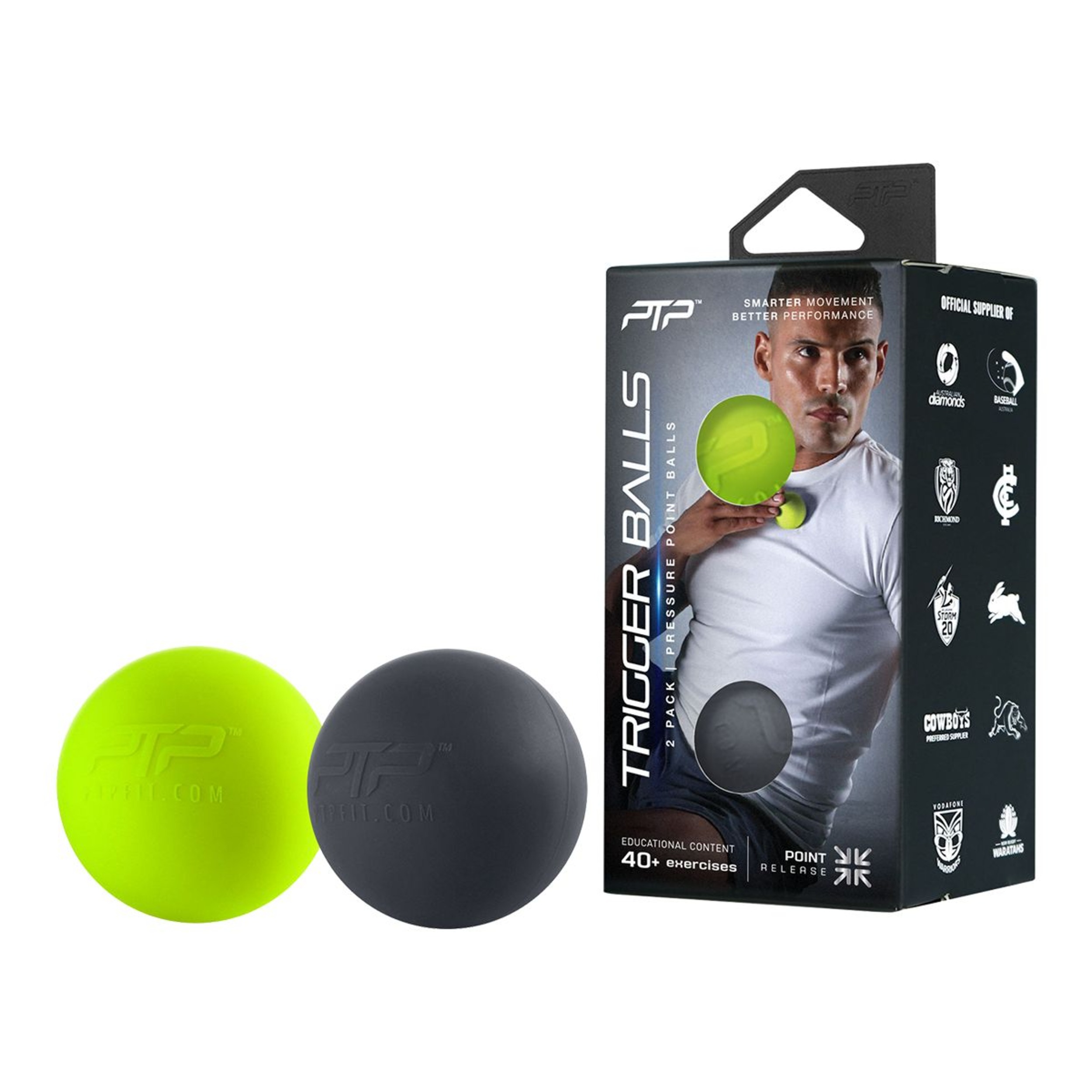 The PTP Trigger Massage Balls allow you to easily target specific over-stressed body areas by pressing, pulling or twisting soft tissue restrictions. Use your body weight for an intense massage or your hand for more pressure control. With two levels of intensity, these portable massage balls will help relieve muscle tension in the feet, glutes, back, shoulders and forearms for matching pain thresholds.