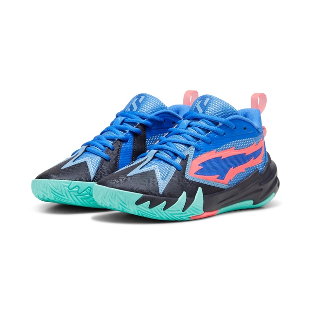 Inspired by Scoot's fast and disruptive play style on the court, this shoe takes design elements from PUMA's Innovative Jaws Branding with a jaw-like rubber wrap-up on the outsole embodying Scoot's fierceness and tenacity on the court. The very first signature basketball shoe for Scoot Henderson has the elements of quickness, speed, and determination to create a playable performance model that stands out within the basketball space. Incorporating fast-movement overlays to represent Scoot's speed and agility on the court, also combing tooling elements committed to provide the energy return and comfort for hoopers all over the world.
