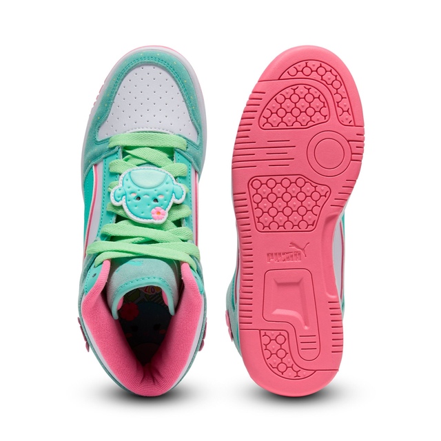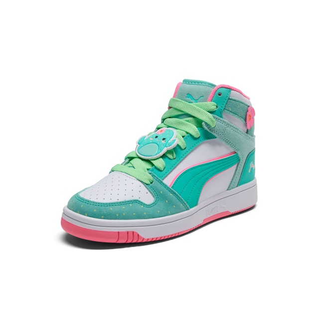 Inspired by the iconic 80s basketball sneakers, the PUMA Kids' Grade School Squishmallow Rebound Layup Shoes offer exceptional comfort and support. Featuring a mid-height padded collar for added stability and the signature PUMA Formstrip, these kids shoes combine style and functionality.