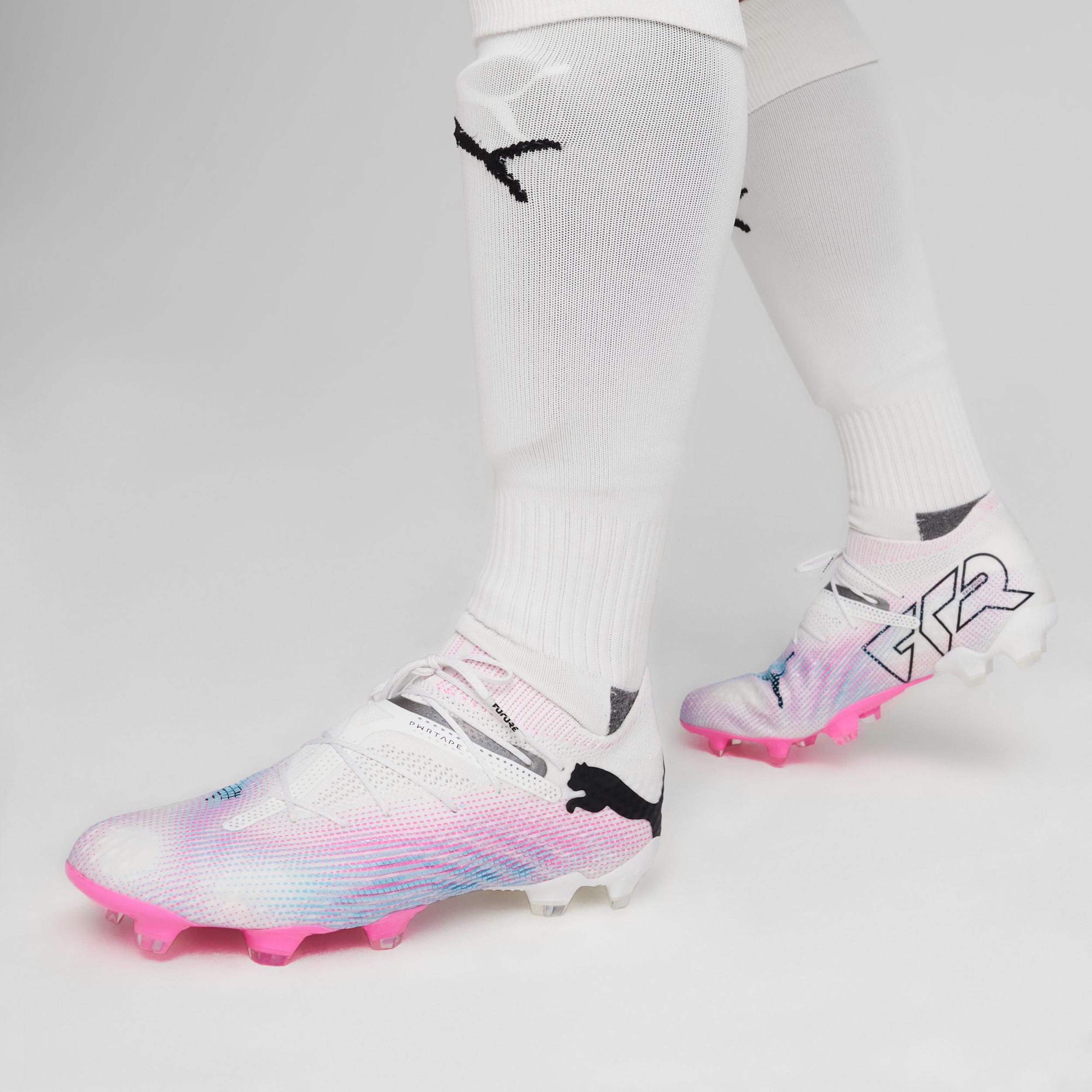 Lock into the game with the PUMA Men's Future 7 Match Firm Ground Lightweight Soccer Cleats. The re-engineered upper of these firm ground soccer cleats features a supportive PWRTAPE, stretchy knit, and lightweight mesh for a next-generation adaptive fit. The Dynamic Motion System provides traction and agility, while embossed details improve touch and control. These mid-cut soccer cleats come in a regular to wide fit, catering to different foot shapes.