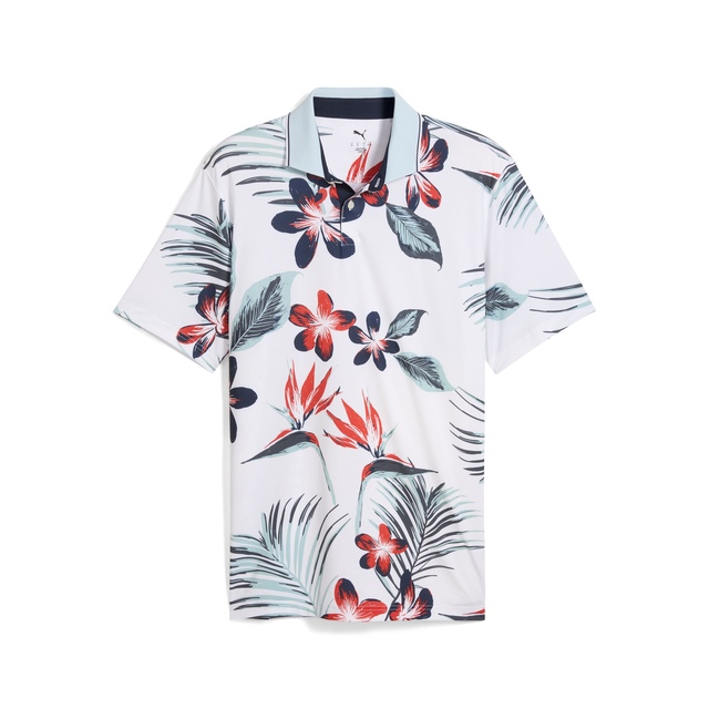 The PUMA Men's MATTR Luau Polo T Shirt blends comfort with performance. Made from MATTR fabric, it offers moisture-wicking, fast-drying, and breathable four-way stretch for an enhanced fit. Lightweight and crafted with at least 70% recycled materials, this polo delivers exceptional performance while supporting a sustainable future.