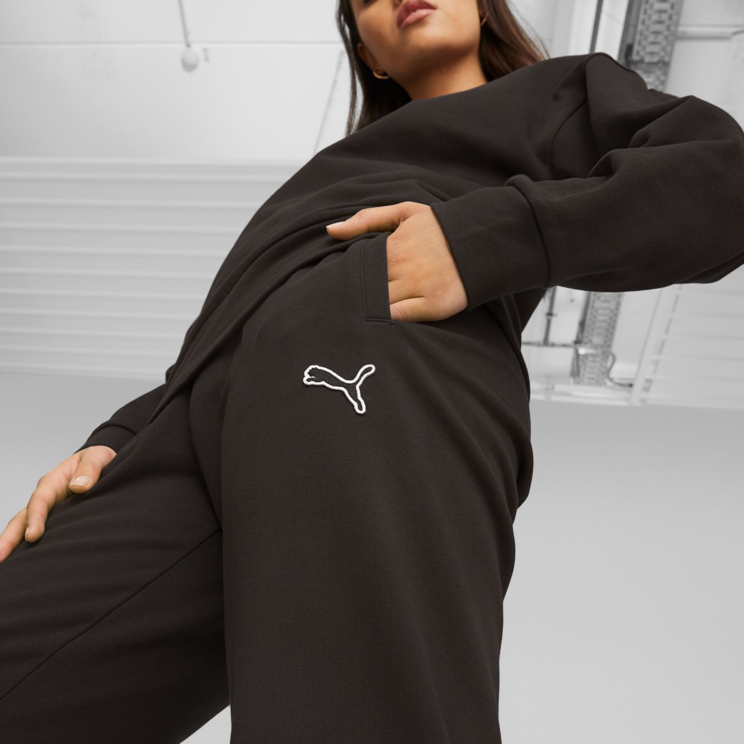 Made with at least 20% recycled cotton as a step toward a better future. Cotton in PUMA products comes from farms with a focus on sustainable farming such as water efficiency and soil health protection. Learn more: PUMA.com/FOREVER BETTER. Main Material 1: 75% cotton, 25% cotton Recycled - fleece - 280.00 g/m² - piece dyed - Chemical- Regular finishing Recycled cat logo badge; Elastic waistband with internal drawcord for an adjustable fit; Elastic cuffs;
