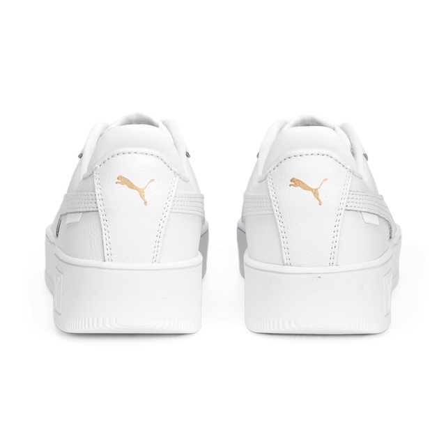 The Carina Street has a streetwear-inspired design in combination with a true platform profile, providing the perfect choice for your everyday outfit. The full leather upper is streetwear inspired with toe overlay and basketball touch. It's accented by a perforated vamp and a synthetic leather PUMA Formstrip. The highlight of the shoe is the new cupsole tooling though with a slightly elevated platform sole with texture interest in toe and heel area. The SoftFoam+ sockliner provides superior cushioning and optimal comfort for every step of your day.