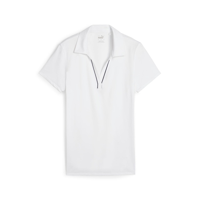 The PUMA Women's Cloudspun Piped Polo T Shirt blends sustainability with top-tier performance. Made with at least 70% recycled material, it features moisture-wicking fabric, 4-way stretch, and breathability to keep you comfortable on the course. Designed to meet the demands of your game, it offers both style and functionality.