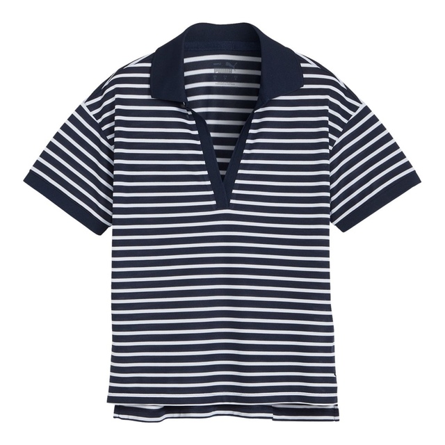 This moisture-wicking women's polo shirt from PUMA is a sustainable choice for active days. Crafted with at least 70% recycled polyester, it keeps you dry during workouts with advanced DRYCELL technology. The striped design delivers classic style while the breathable pique fabric ensures comfort. Perfect for running errands or hitting the gym, this eco-friendly top offers everyday versatility. The recycled fabric wicks sweat to keep you cool and dry when your heart rate rises. Look good and feel great in this sustainably made polo.