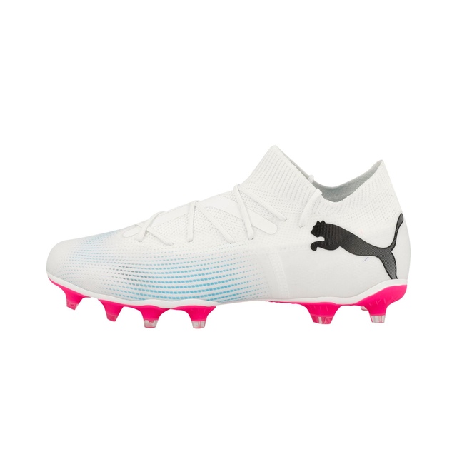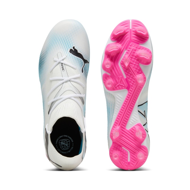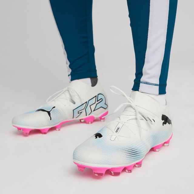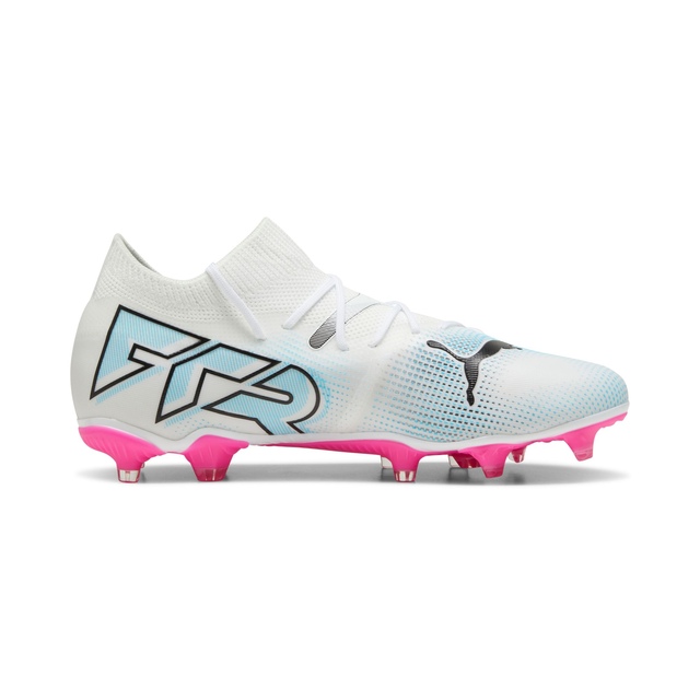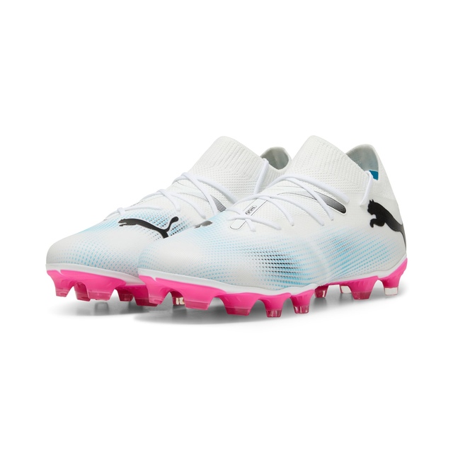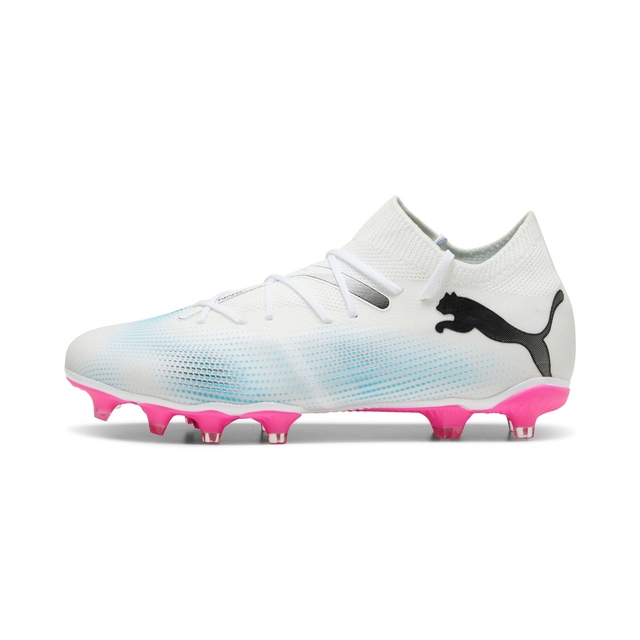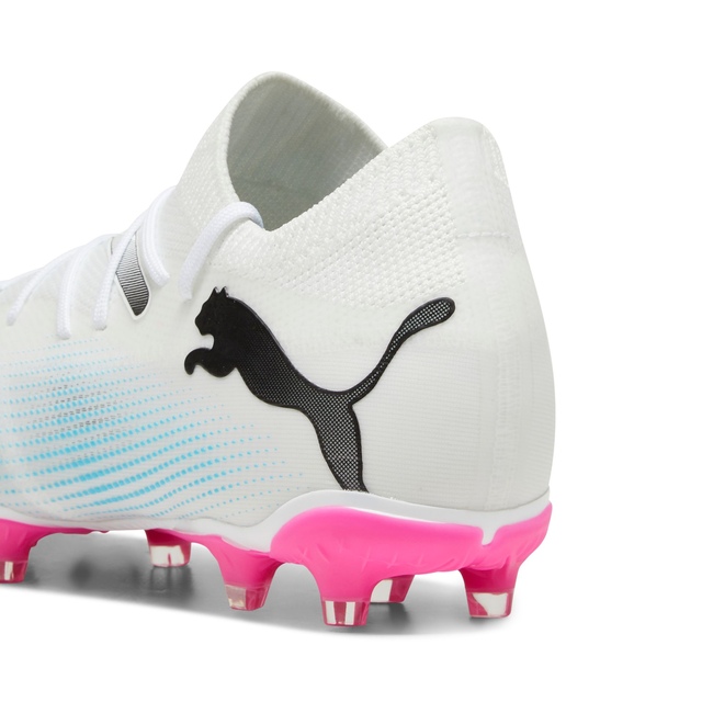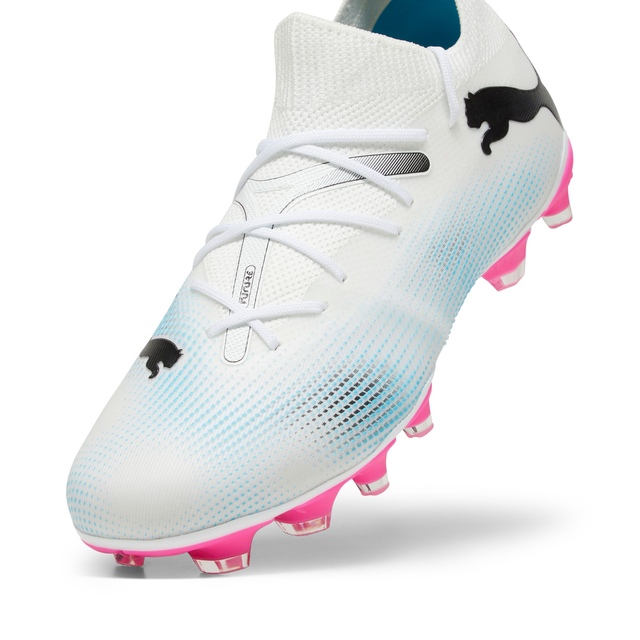 Lock into the game with the PUMA Women's Future 7 Match Firm Ground Lightweight Soccer Cleats. The upper of these firm ground soccer cleats features lightweight mesh, stretch knit, and supportive PWRTAPE for a comfortable fit and support. Their volume and instep height measurements are engineered for the female foot, while embossed details improve touch and control. These mid-cut soccer cleats come in a regular to narrow fit, catering to different foot shapes.