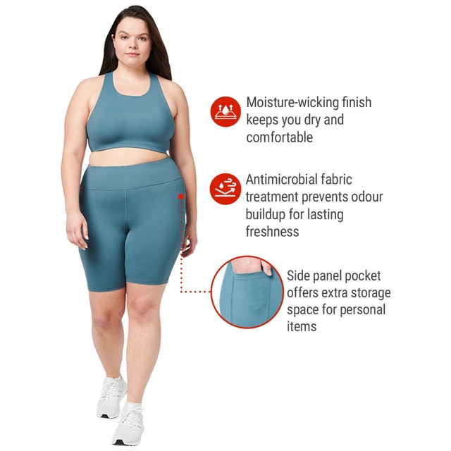 Head into each workout in sleek style and impressive comfort with these Push FWD Women's Plus Size 10 Inch Bike Shorts. The women’s shorts feature moisture-wicking, antimicrobial fabric to help keep you fresh and dry as you push your limits. The Push FWD women’s bike shorts are topped with a comfortable waistband that features a hidden pocket for your keys and cards, while another pocket at the side panel adds space for other personal items.