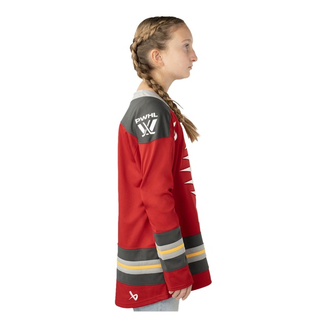 Proudly represent and support your hometown team on game day, or anytime by sporting your team’s on-ice PWHL Ottawa Charge Bauer Youth Home Jersey. This jersey boldly displays the team’s brand-new identity so everyone can know where your fandom lies.