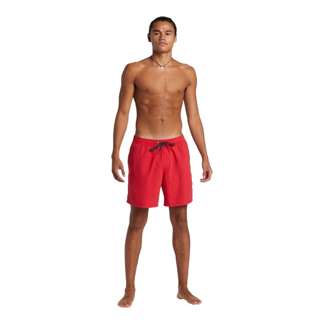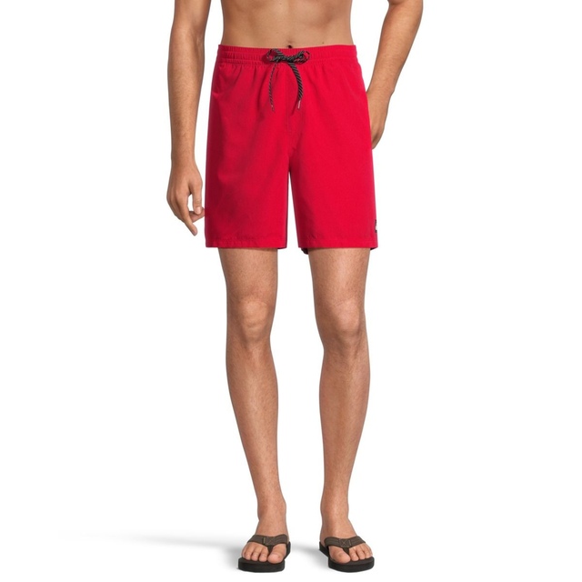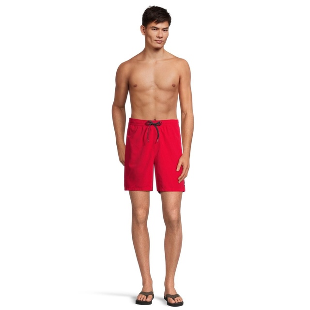 Swim Shorts for Men. Features include: Collection: Everyday collection, Fabric: Recycled polyester remade supersuede fabric, Coating: PFC free hydrophobic treatment, Water repellent, Fit: Straight leg fit, Waist: Classic comfort waistband, Outseams: 17" outseam, short length, Pockets: Side-entry pockets, Back hook and loop tape closure pocket, Closure: Fixed drawcord closure, Branding: Iconic Mountain & Wave logo, Other Features: Key bungee cord inside pocket, Recycled yarn.