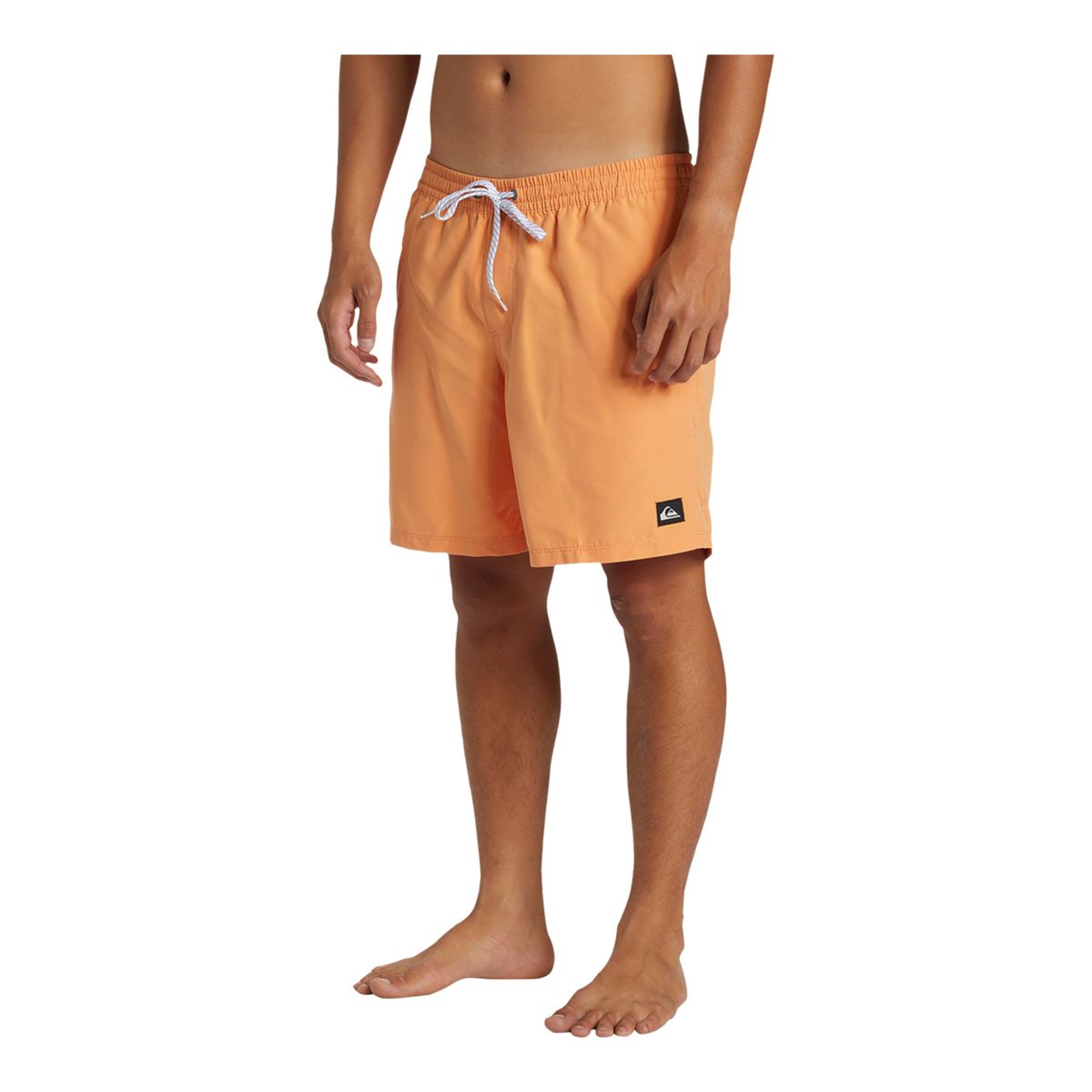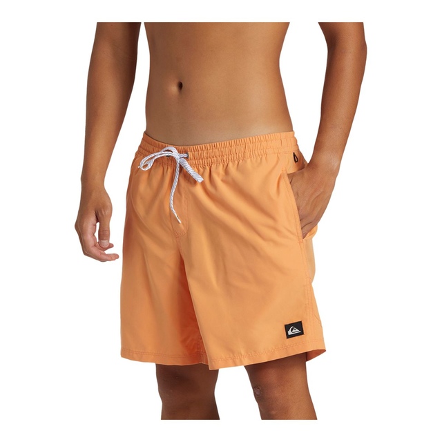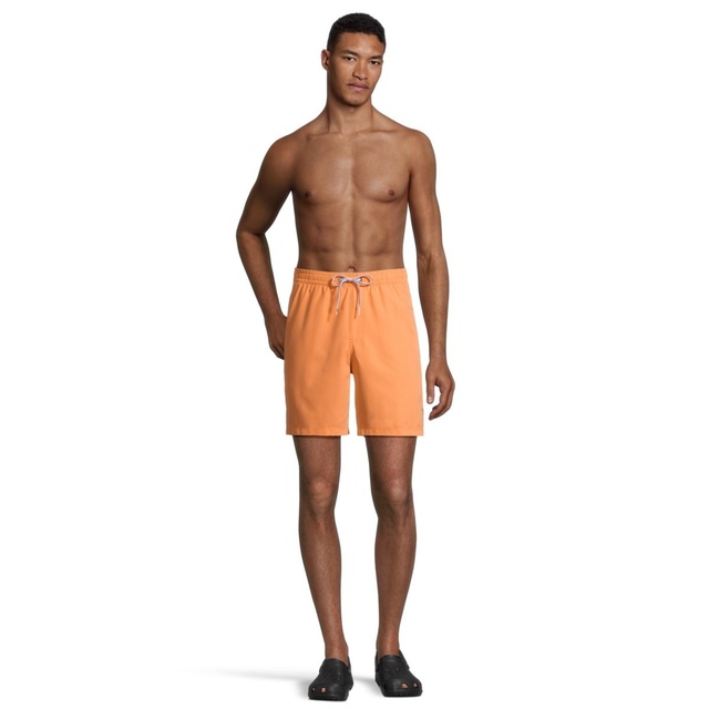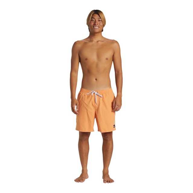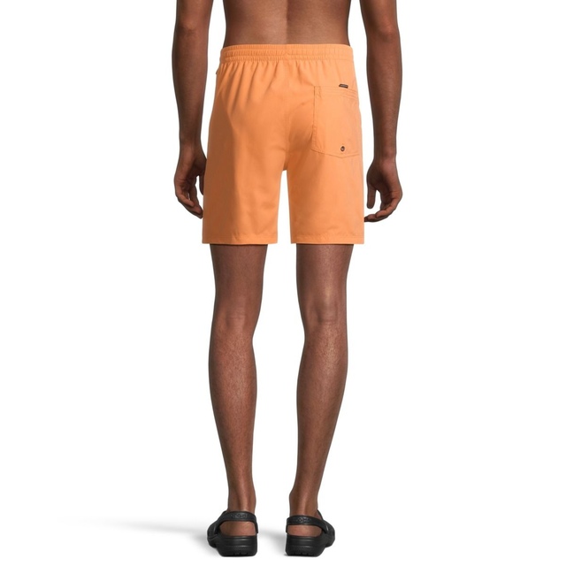 Swim Shorts for Men. Features include: Collection: Everyday collection, Fabric: Recycled polyester remade supersuede fabric, Coating: PFC free hydrophobic treatment, Water repellent, Fit: Straight leg fit, Waist: Classic comfort waistband, Outseams: 17" outseam, short length, Pockets: Side-entry pockets, Back hook and loop tape closure pocket, Closure: Fixed drawcord closure, Branding: Iconic Mountain & Wave logo, Other Features: Key bungee cord inside pocket, Recycled yarn.