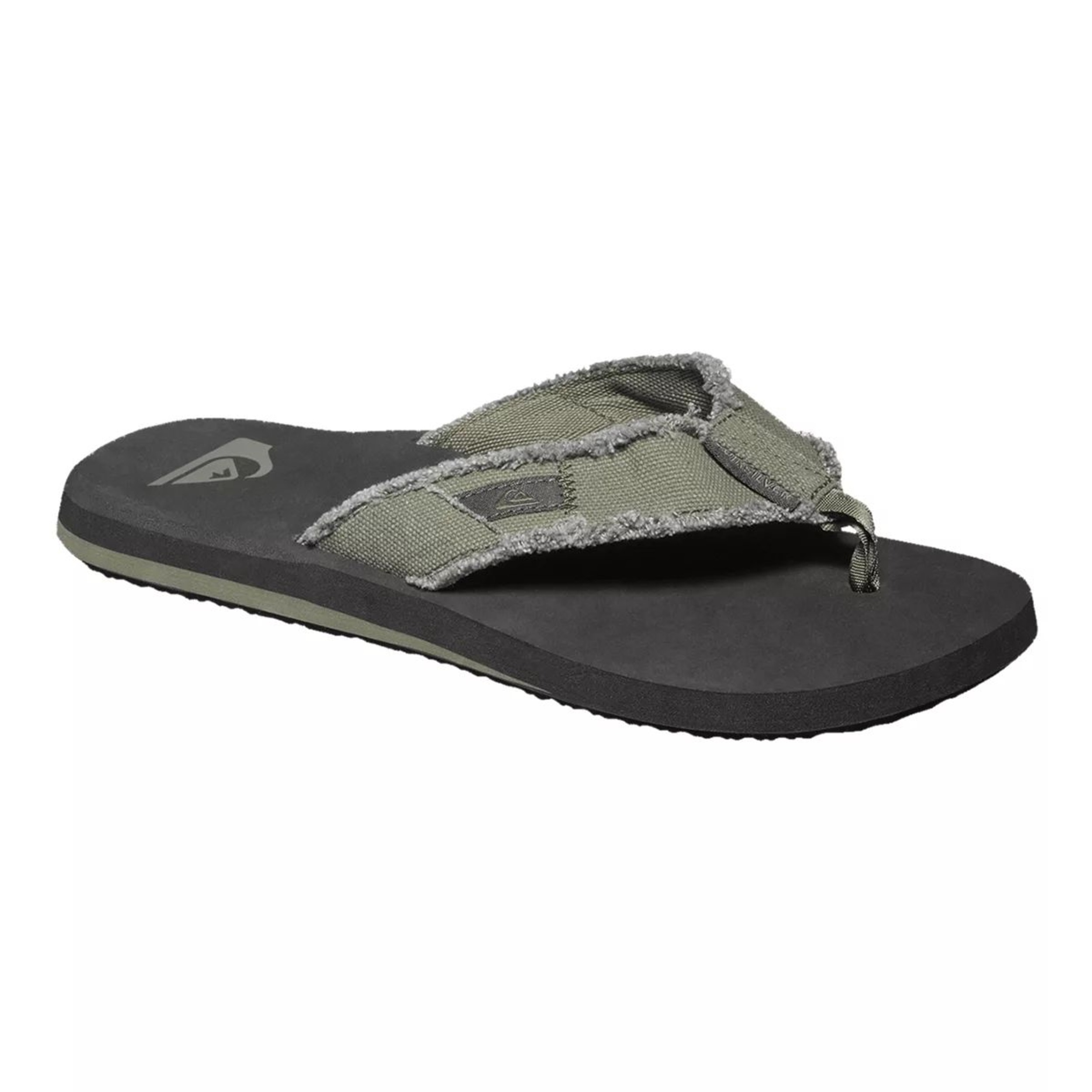 Treat your feet to Quiksilver Men's Monkey Abyss Canvas Supported Cushioned Sandals. These sandals are crafted with a washed cotton canvas upper and frayed edges for a relaxed look. They have a soft and durable double-woven strap lining and a double-layered toe-post for a comfortable fit. A dual-density EVA midsole with arch support provides lasting comfort and the blown rubber outsole has a herringbone logo pattern for enhanced traction.