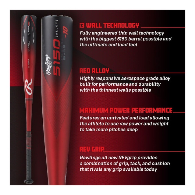 Go to the plate with more power with the new 2023 5150 USSSA baseball bat. It's fully engineered from aerospace-grade RED alloy for enhanced performance and durability. It's constructed with an end loaded feel so you can use the extra weight to generate more power. As a result, you'll be able to crank more balls through gaps than ever before. In addition, the new 5150's REVgrip provides more grip, tack and cushion and allows you to maintain control all the way through your swing too. If you need a bat that delivers raw power you can control, at a price you'll love, you need the new USSSA 5150 bat.