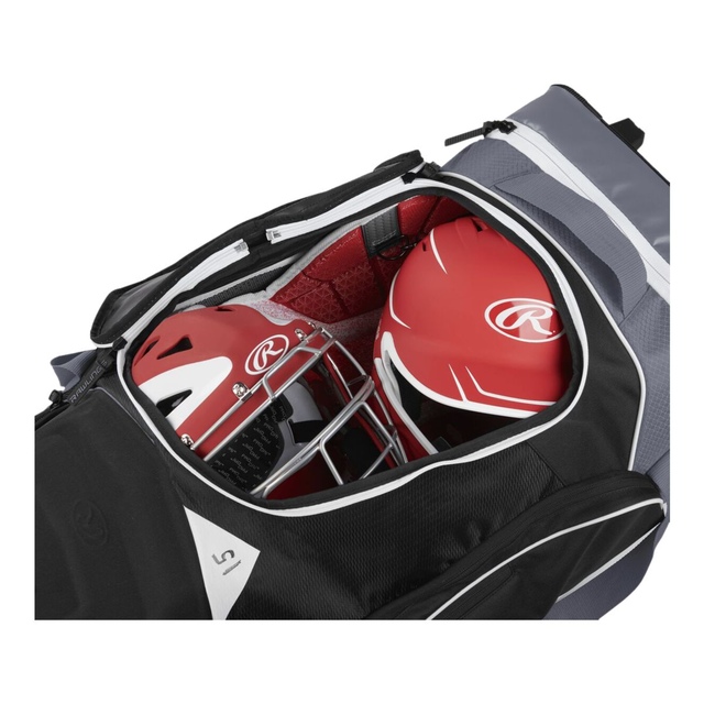 This wheeled catcher's bag is extremely versatile, and perfect for carrying all your gear to the game. It features a main storage compartment for your catcher's gear and helmet, as well as a separate, hard molded pocket to keep your glove protected, and can hold up to four (4) bats. Its full bottom rails with rugged, durable wheels along with reinforced hand and shoulder straps make this bag ready to stand the test of time.