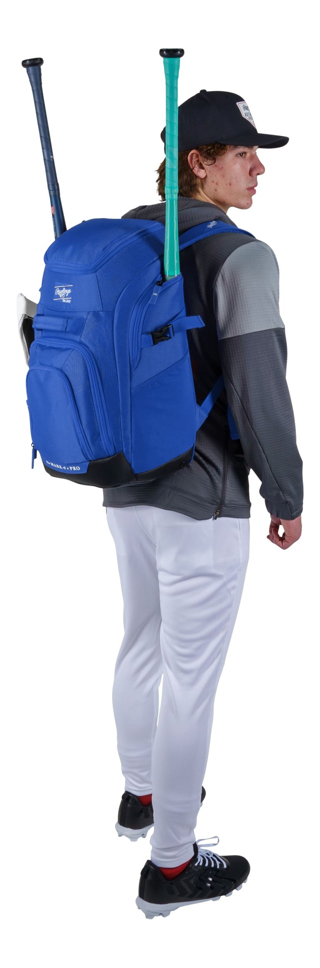 Side mesh pockets provide space for water bottles or bat storage